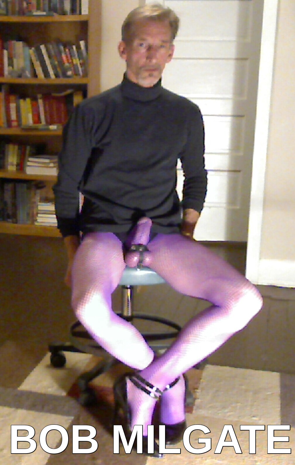 BOB MILGATE PURPLE FISHNET PANTYHOSE HIGH HEELS