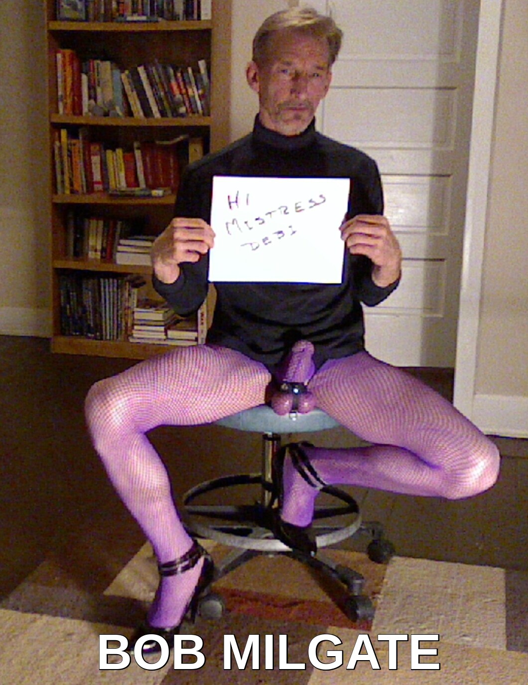 BOB MILGATE PURPLE FISHNET PANTYHOSE HIGH HEELS