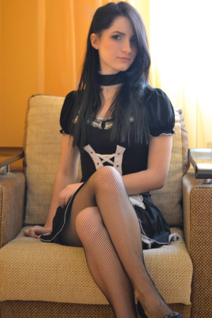 EXPOSED WEARING BLACK FISHNET PANTYHOSE AND HIGH HEELS