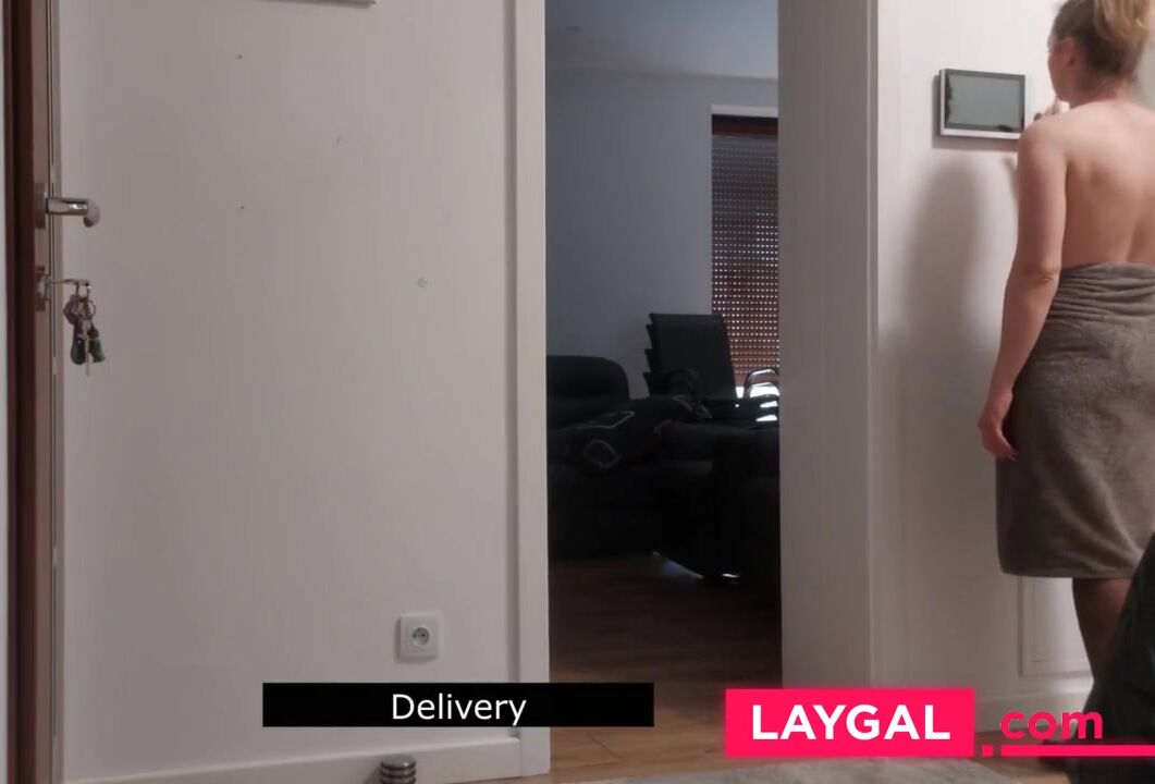 Rough-fucking with the delivery guy - hard fuck and facial for a brunette m