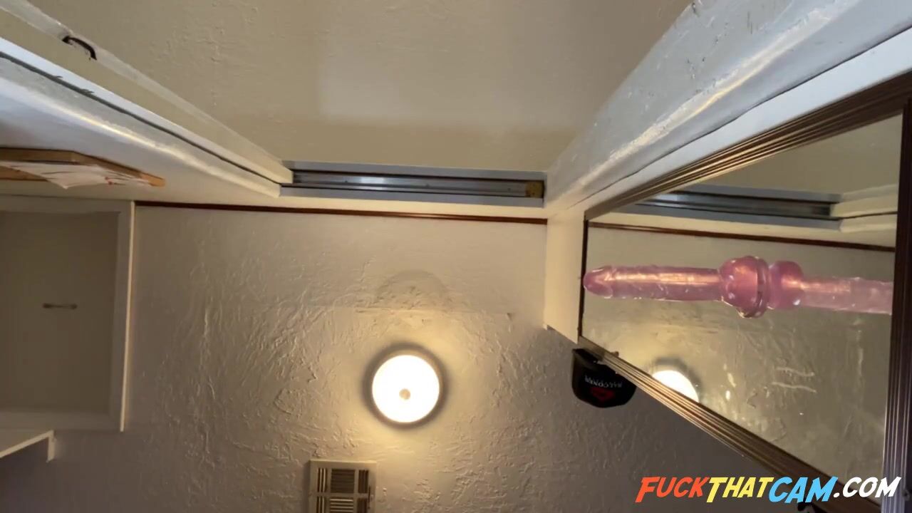 A solo female performer stars in this amateur webcam video, using a dildo and a mirror to bring herself to orgasm. Her small breasts and skilled masturbation make for a steamy show.