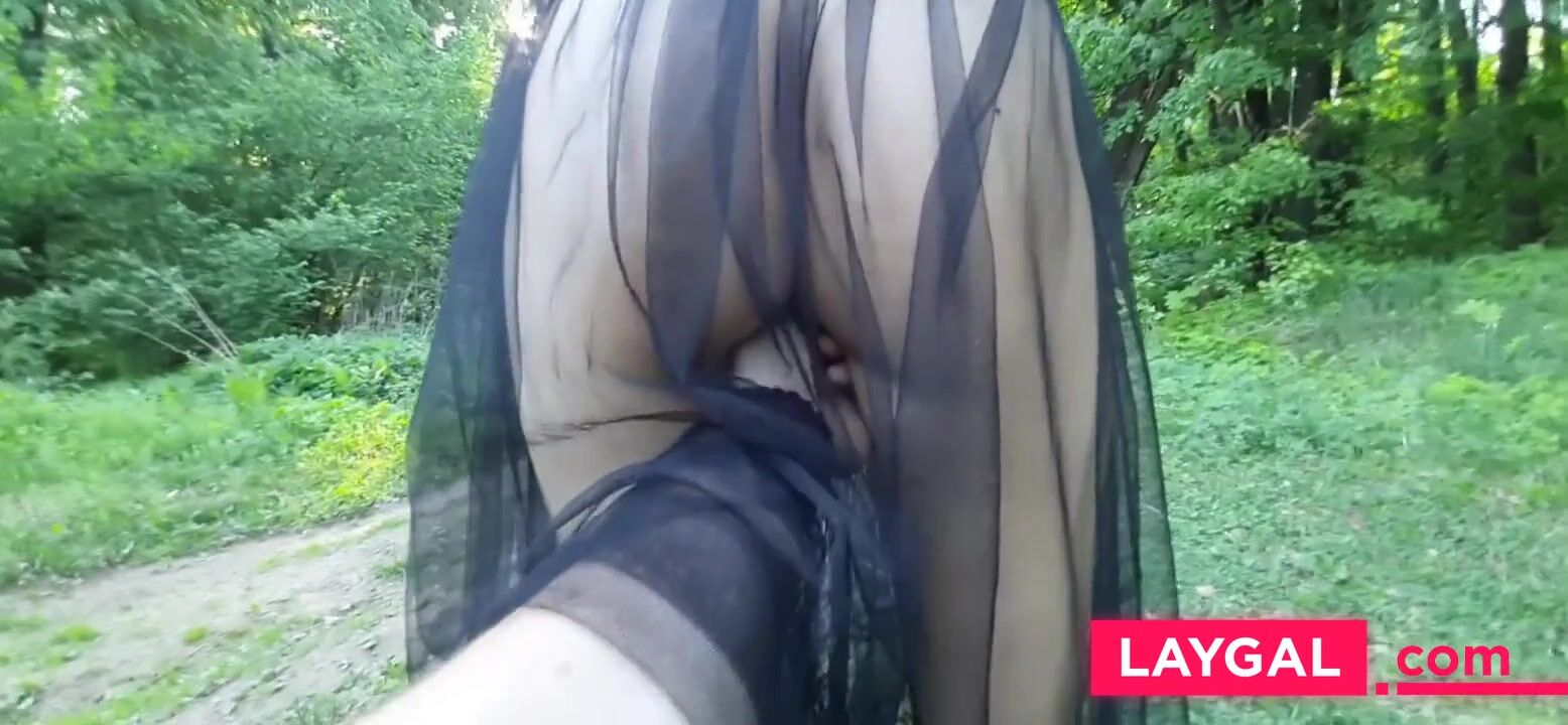 A brunette amateur with perfect tits finds herself in a forest, where she experiences rough BDSM and hardcore anal sex. She endures bondage, rough sex, and a painful anal creampie.
