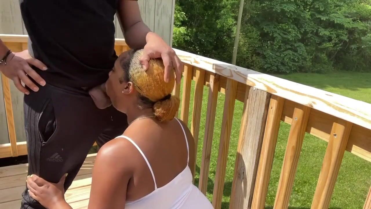 A steamy outdoor encounter with a twist! This ebony beauty loves deep-throating and taking big cocks, especially when it leads to rough, passionate sex in public. Watch her take it from behind with her sun dress hiked up, moaning with pleasure on a balcony for all to hear.
