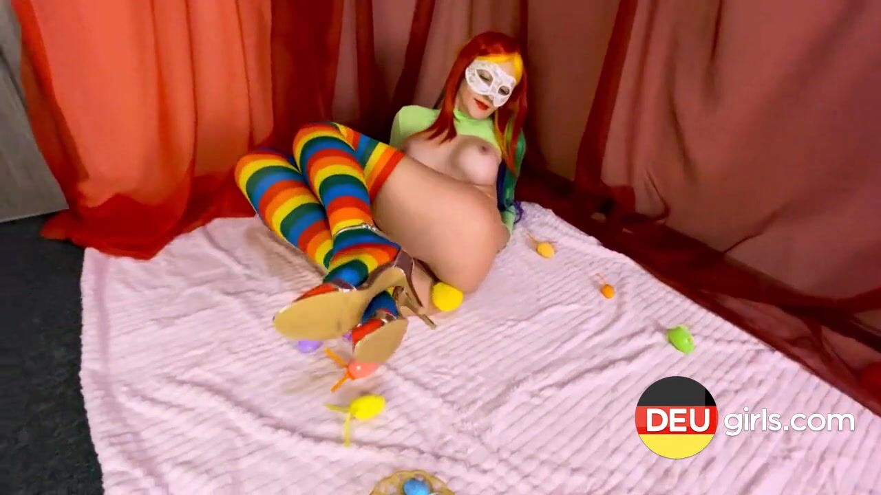 Sexy German MILF teases in this amateur video, showing off her big tits while playing with anal tail toys and masturbating, giving a close-up view of her pussy and ass.