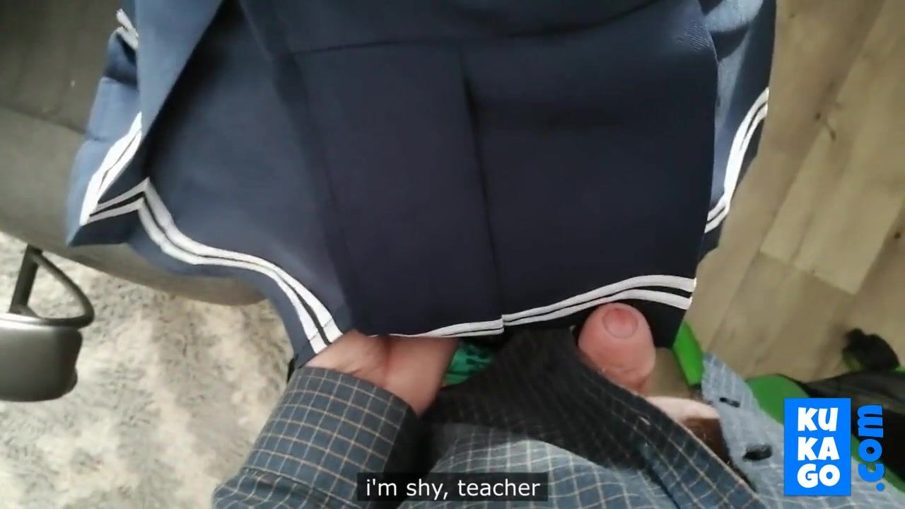 A petite schoolgirl in uniform gets naughty with her teacher, engaging in hardcore sex with doggystyle and reserve-cowgirl positions, featuring amateur dirty talk and a cumshot.