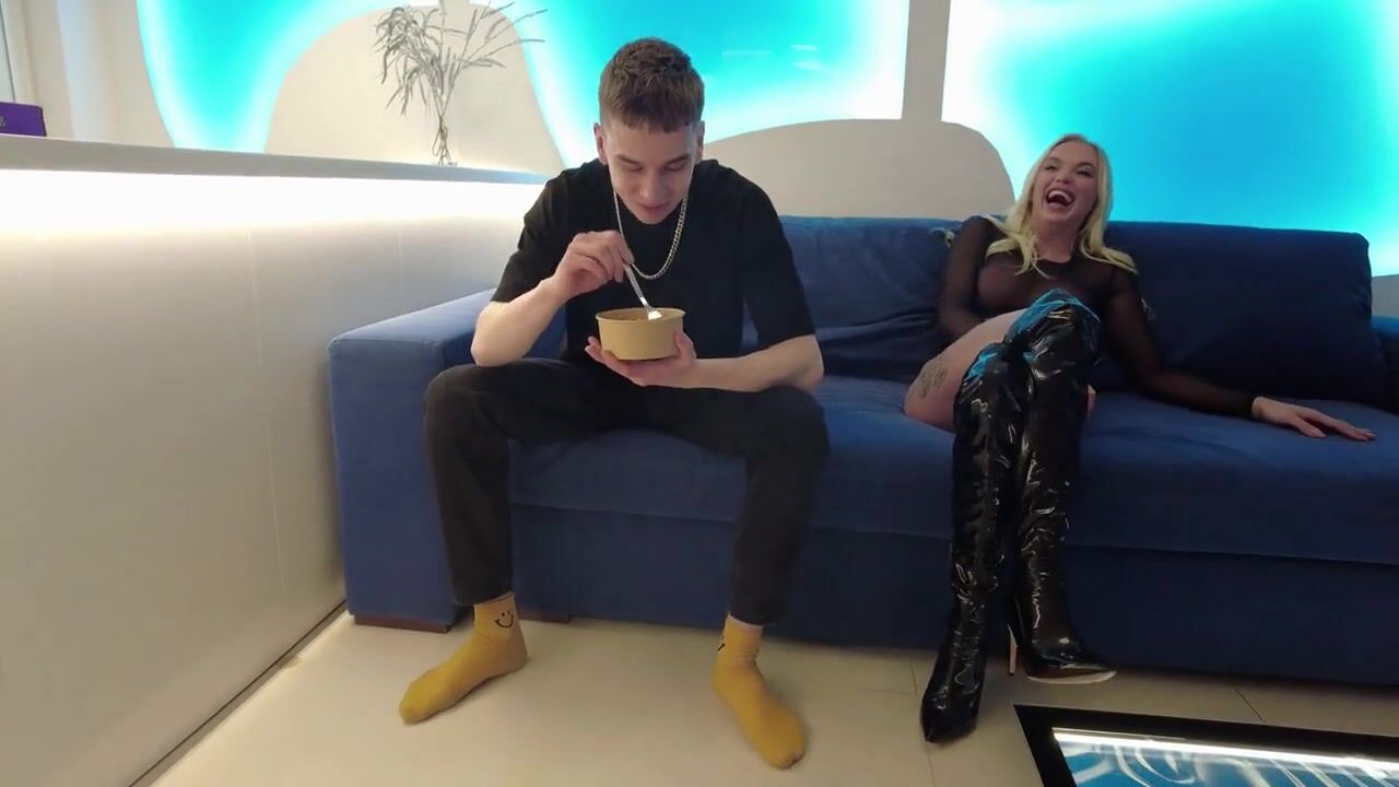 Go behind the scenes of a porn shoot and watch a sexy blonde slut take a big cock in her tight ass for the first time. She loves getting fucked hard and rough, and her fake tits bounce as she rides that big dick. This skinny babe with big fake tits takes a facial cumshot like a pro.