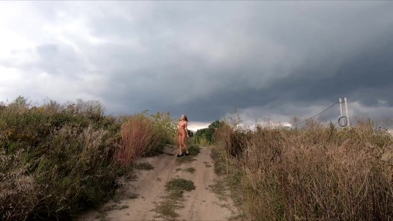 A daring exhibitionist with tattoos and a big ass walks naked outdoors on a broken bridge, risking it all for the thrill of public nudity and the gaze of unknown onlookers.
