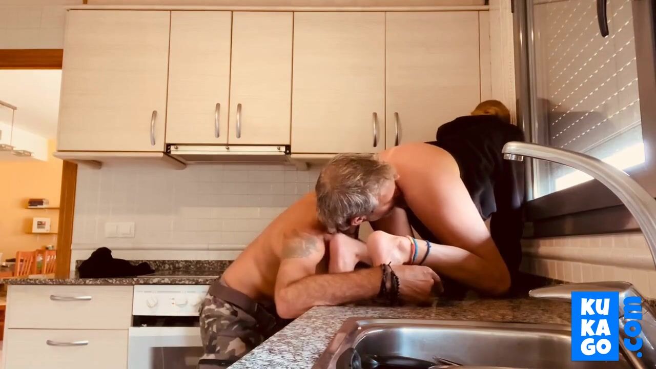 A hot and steamy kitchen encounter with a Spanish blonde MILF. She's petite and slender with small tits, and loves a good pussy licking before returning the favor with a blowjob. This real amateur couple's sex session ends with an intense orgasm and a mouthful of cum.