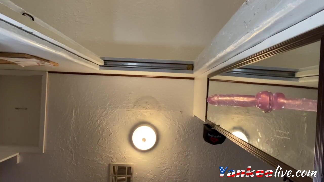 A solo female performer stars in this amateur webcam video, using a dildo and a mirror to bring herself to orgasm. Her small breasts and skilled masturbation make for a steamy show.