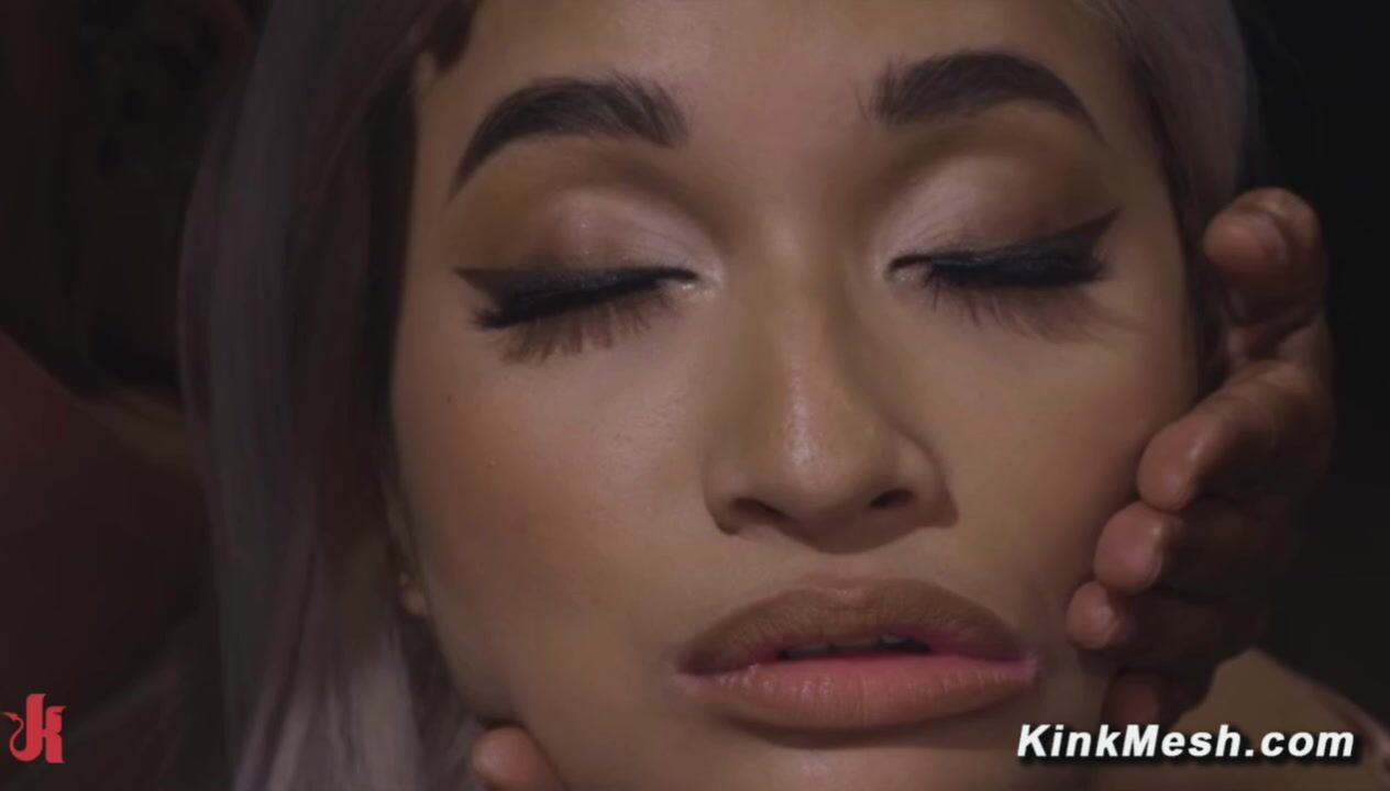 Avery Black submits to kinky dungeon interview of Jet Setting Jasmine BDSM test includes a hard OTK spanking on her red ass bound and suspended Avery worships pussy through latex then stapon fucking