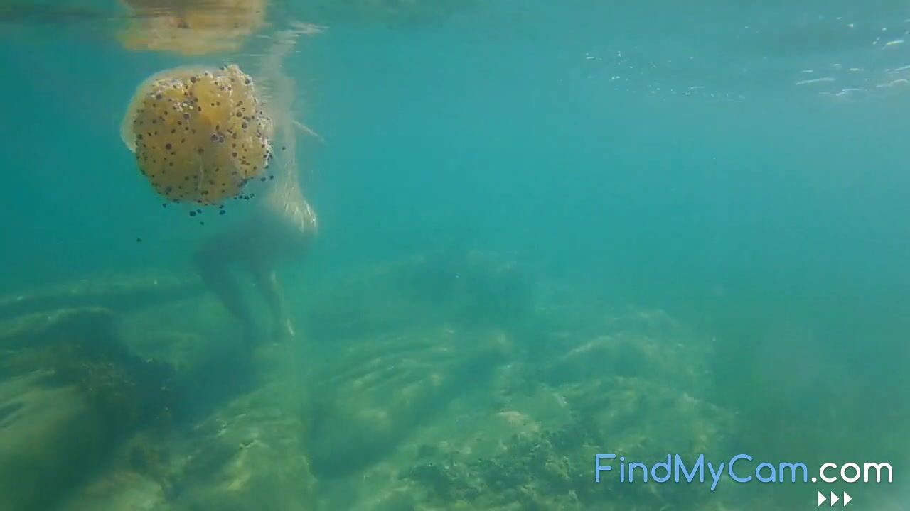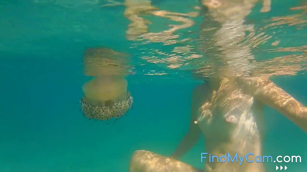 A solo female exhibitionist takes a daring swim with her new friends, baring it all in a public place. Her small, hairy pussy and long legs are on full display, with a touch of BDSM to spice things up.
