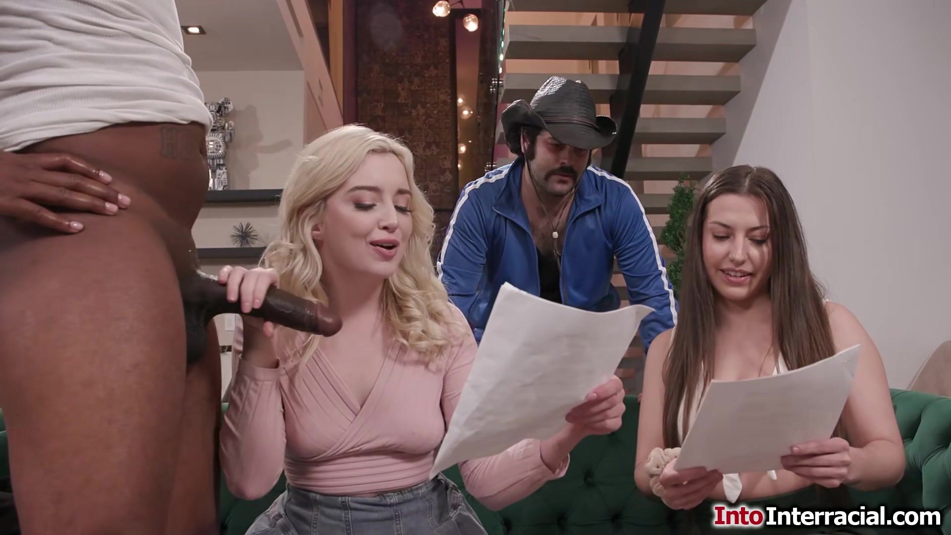 Lexi Lore prepare her upcoming scene with Spencer Bradley when her bf shows up.He stuffs his bbc up her pussy and free uses her during the rehearsal.The blonde babe sucks and handjobs his big dick while reading her lines.She rides his big black cock