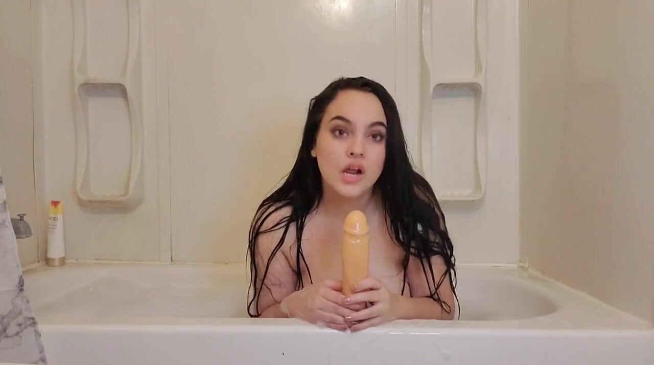 Big-Ass Brunette Teen Rides Dildo in Bubble Bath Solo