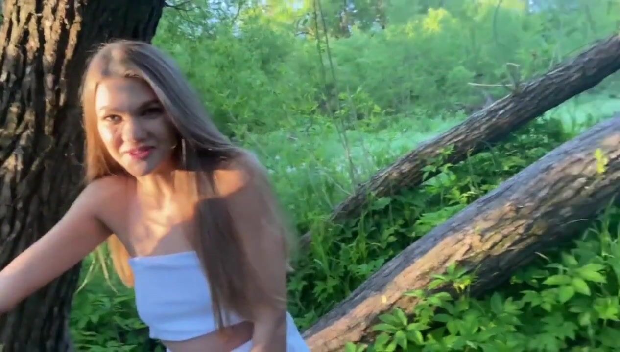 A guy spies on a girl peeing in the forest and then approaches her. He face-fucks her, making her gag on his big cock. They have passionate sex, fucking hard and deep in multiple positions until they both orgasm.