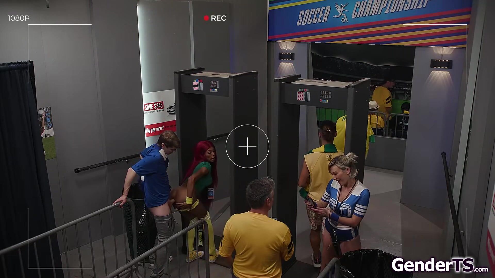 Busty trans Lola Morena sucks cock at the security gate.Her colleague Adira Allure works the row away while the shemale is barebacked in public.The tgirl is sucked by the blonde while she anal rides before she sets her pussy on top of her tranny dick
