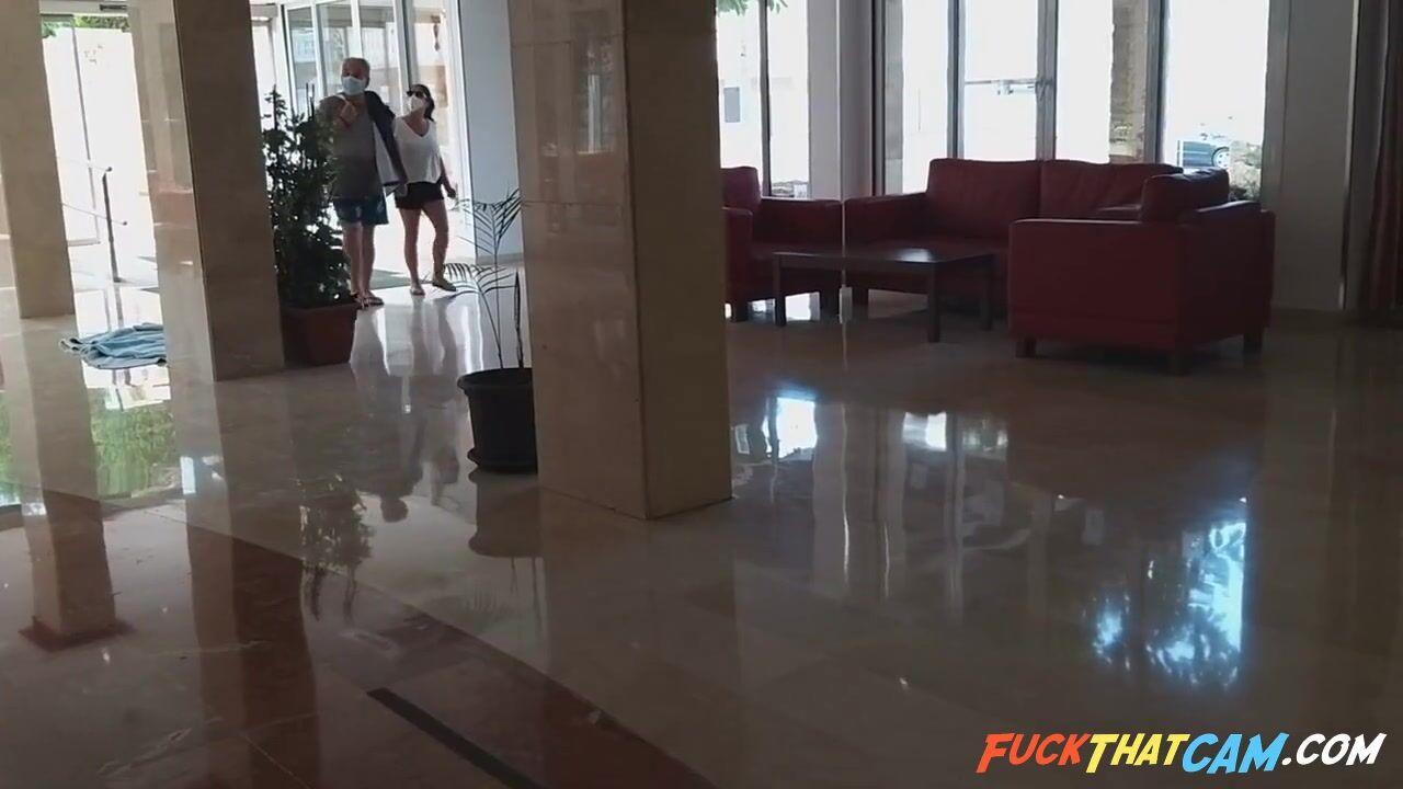 Public Nudity in a Hotel Lobby - No Panties Flash