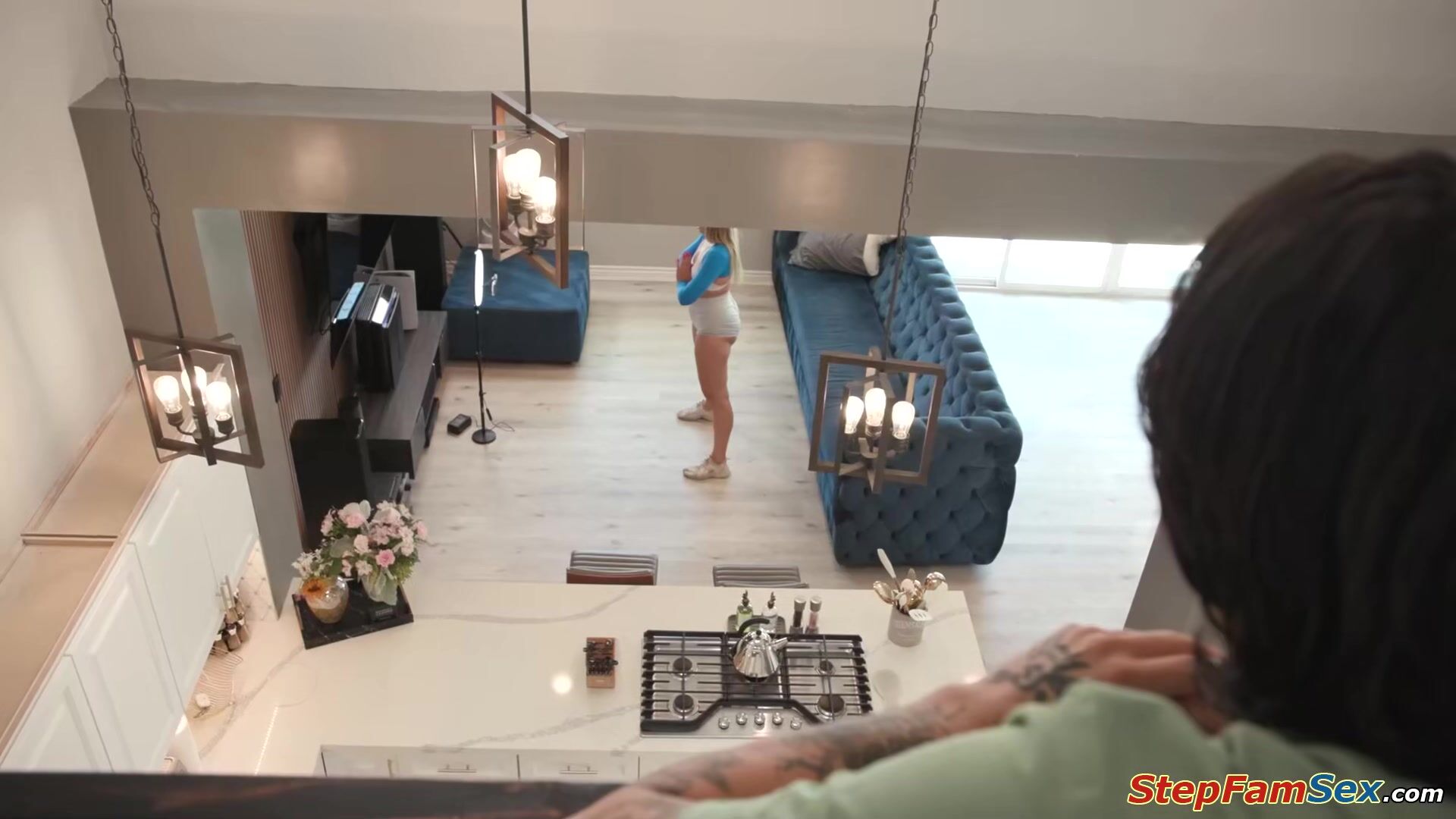 Stepbrother Elias Cash spying on his sexy stepsis River Lynn making a workout vid.The small tits blonde notices his boner and offers to jerk and suck him off.The blonde stepsis gets her shaved pussy licked and rides on her stepbros hard cock