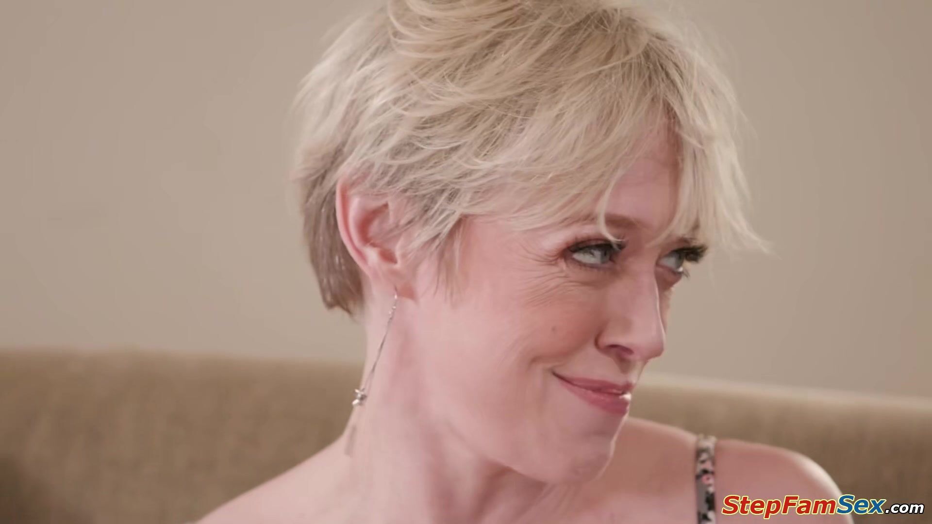 Teen stepdaughter Sophia Sterling wants to watch her big tits stepmom Dee Williams fuck her bf ifo her.The busty milf deepthroats the guys big cock and is tittyfucked.The small boobs blonde masturbates on her stepmom getting her shaved pussy banged