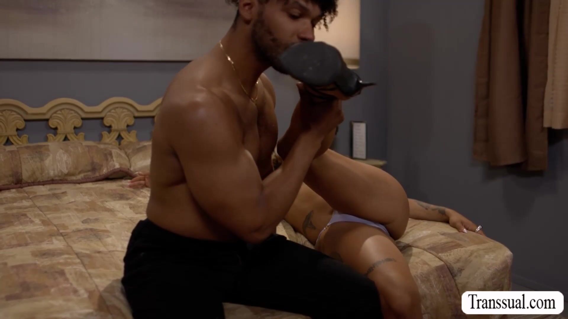 Me and my TS date are in the motel room for our first date.We start kissing each other and she then throat my cock passionately.In return,I lick her ass first and bareback fucks it so deep and hard.Go to Transsual.com for the full video of this.