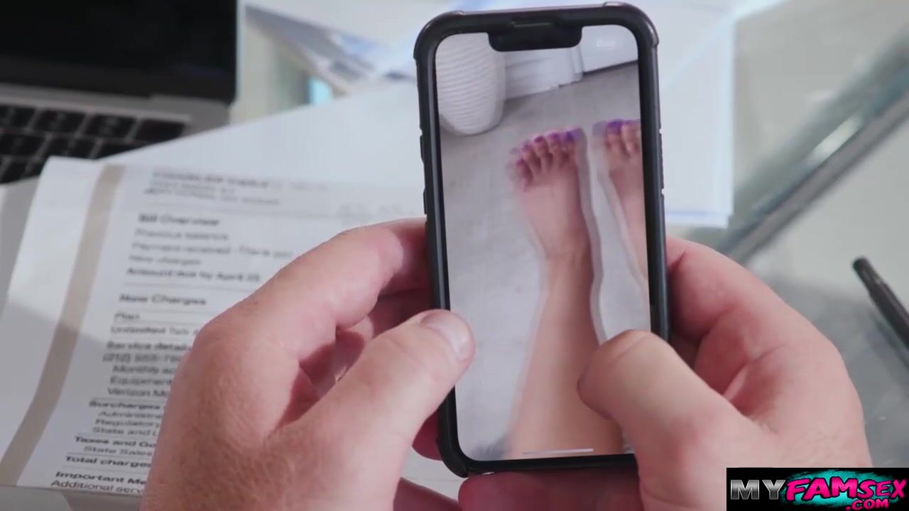 Giving my perv stepdad a footjob and blowjob while im live in social media.After that,she eats my pussy first and then fucks my pussy so deep and fucking hard.go to Myfamsex.com for the full video and more related to this.