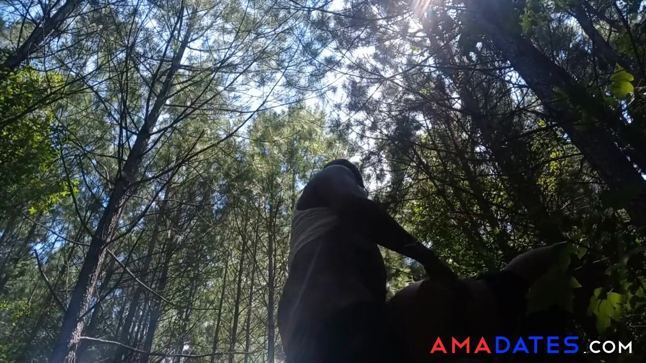 Ebony amateur couple goes for a walk in the woods and ends up having passionate sex. She gives him a deepthroat blowjob and then they fuck, with her tight pussy dripping wet as she rides his big black cock. They don't care if anyone sees!