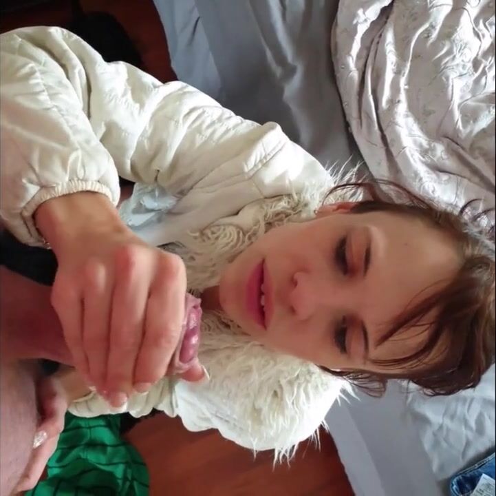 Watch this hot brunette in a fur coat give an amazing POV blowjob! She sucks and jerks with skill, earning a facial reward.
