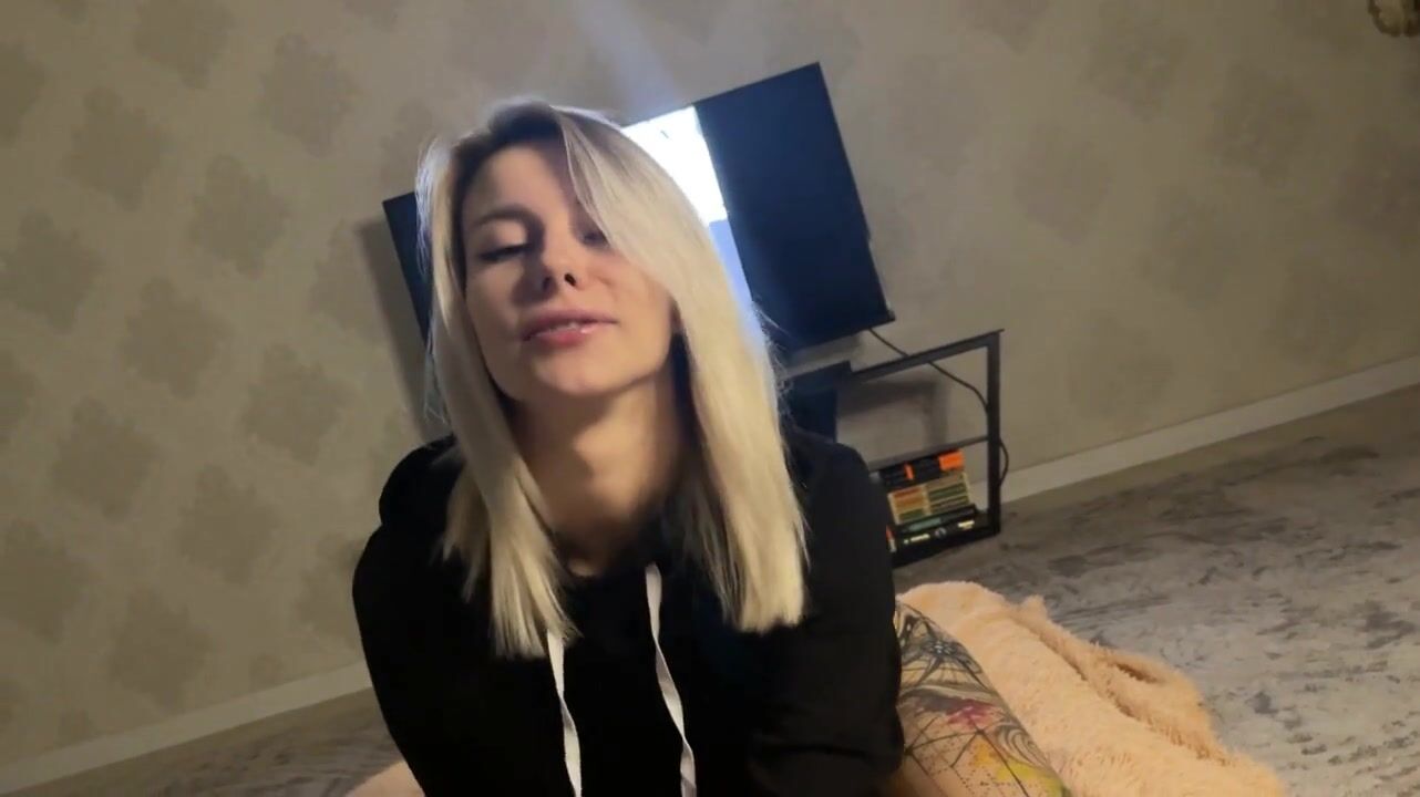 This hot blonde babe with big tits and tattoos can't keep her hands off her man's big cock. She gives him a deepthroat blowjob and then rides him like a cowgirl, taking his big dick inside her. Ending with a mouthful of cum.