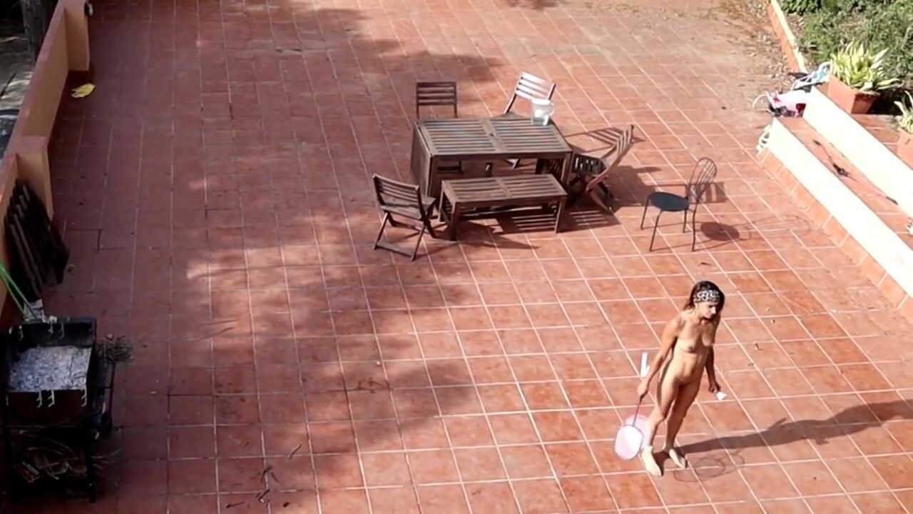 A steamy outdoor encounter! A petite brunette gives a BJ, then they fuck in view of the courtyard, an amateur couple enjoying sex in the fresh air, their passion on full display.