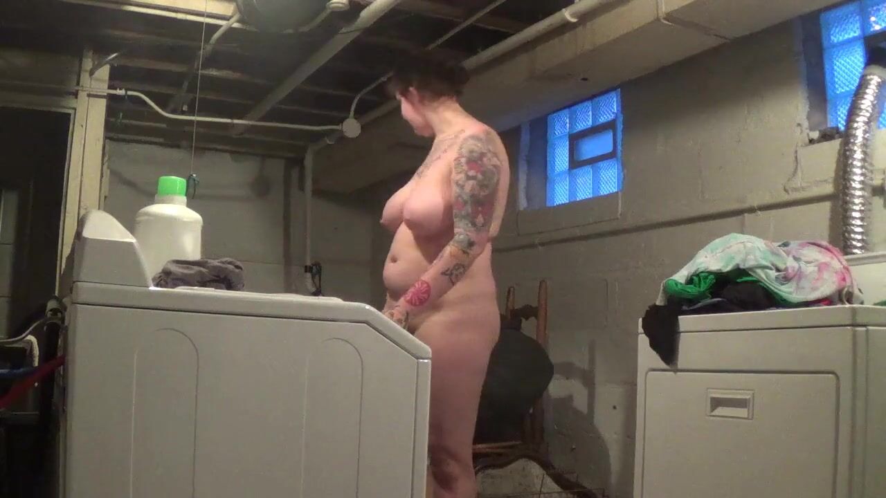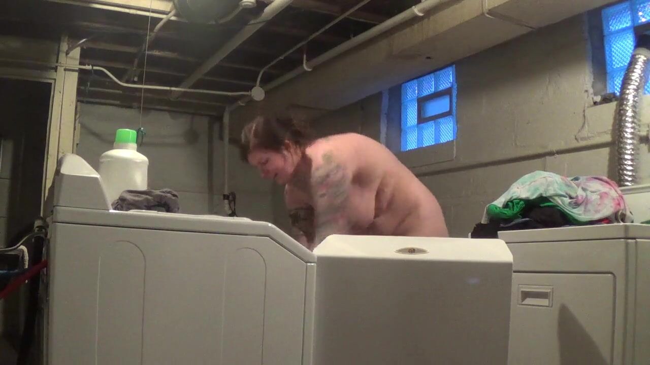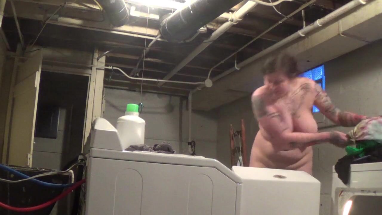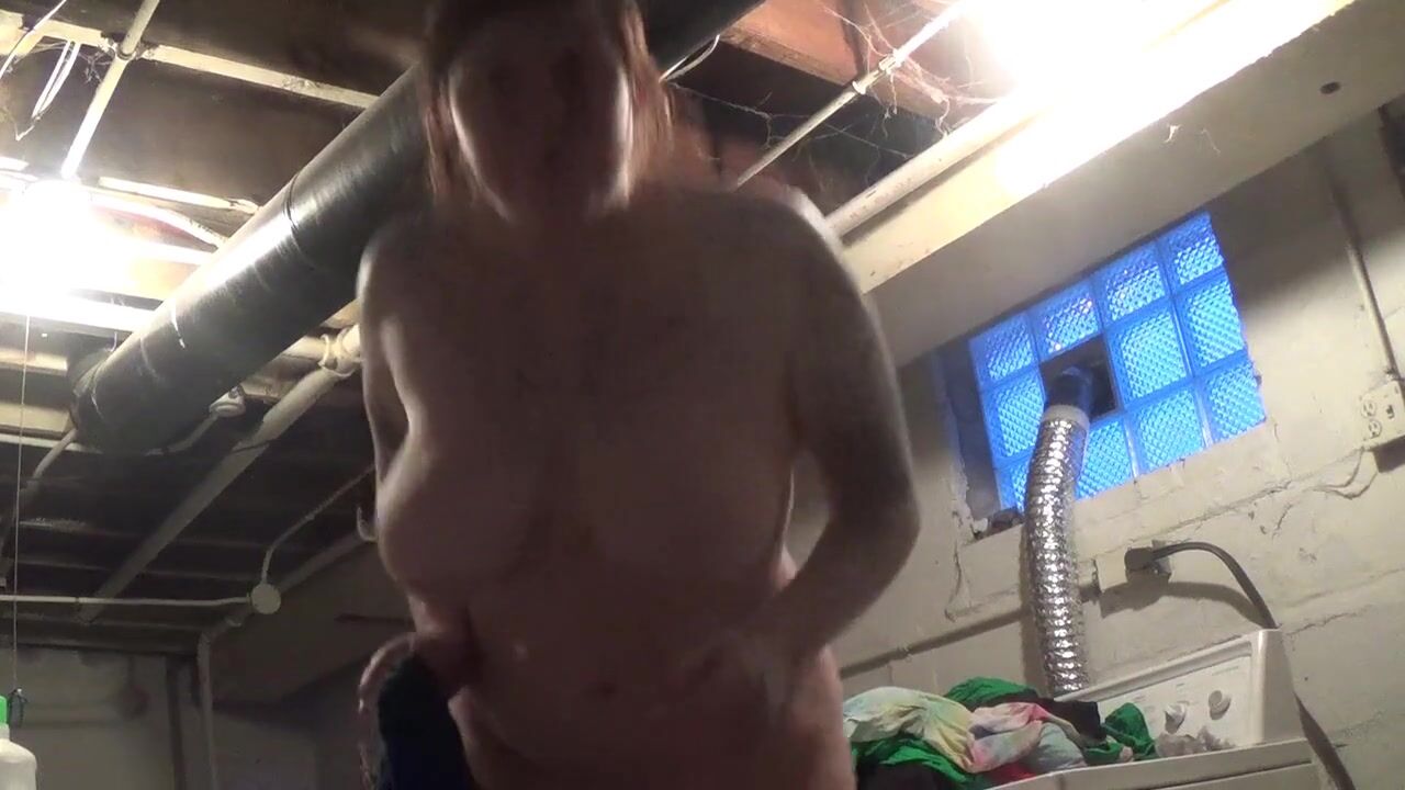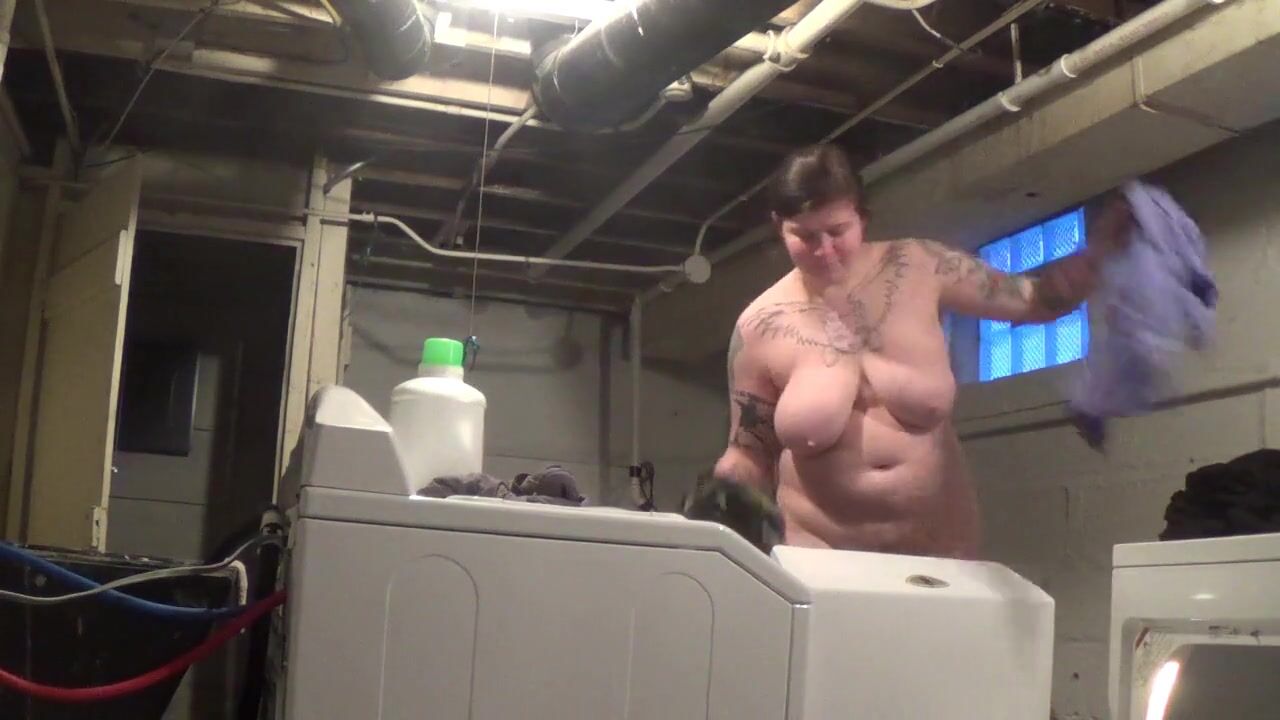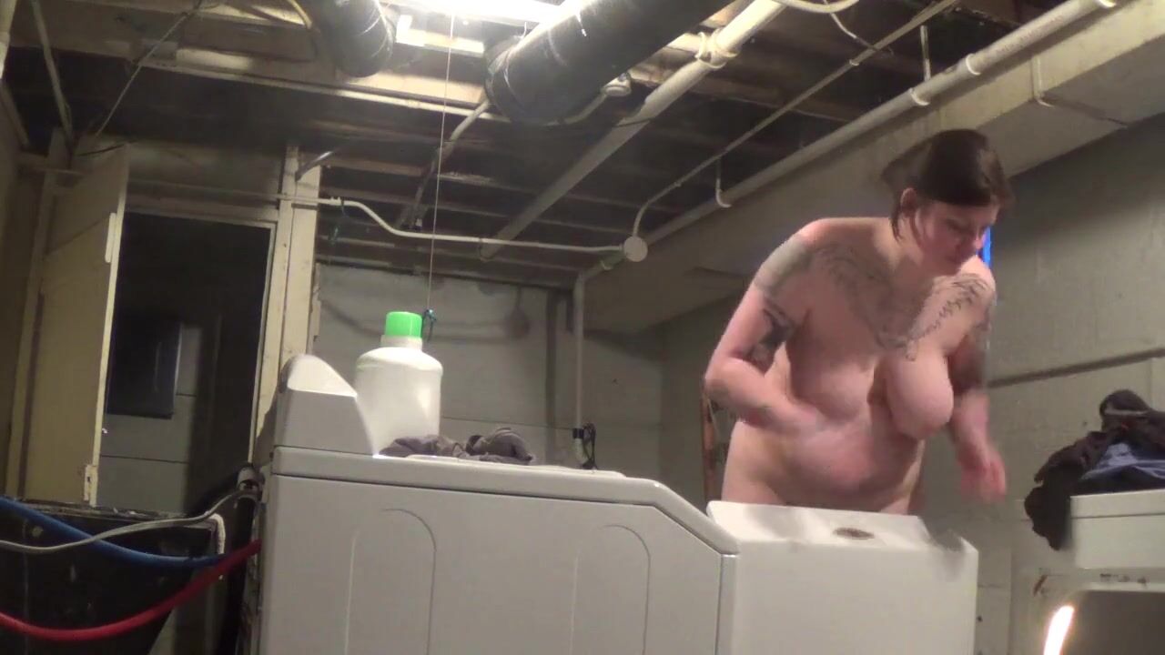 Risky fun! I do my laundry naked in a shared basement, hoping my neighbors don't catch me! Amateur BDSM solo webcam show with big-tit milf - listen for my neighbors!