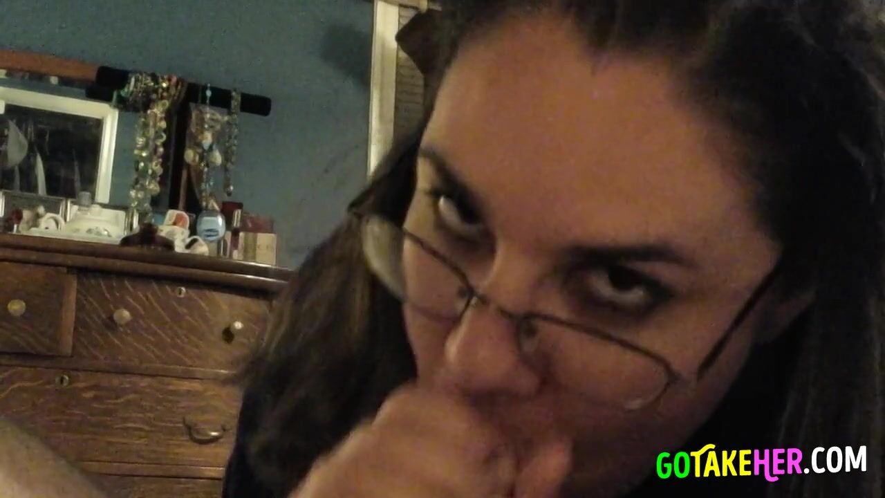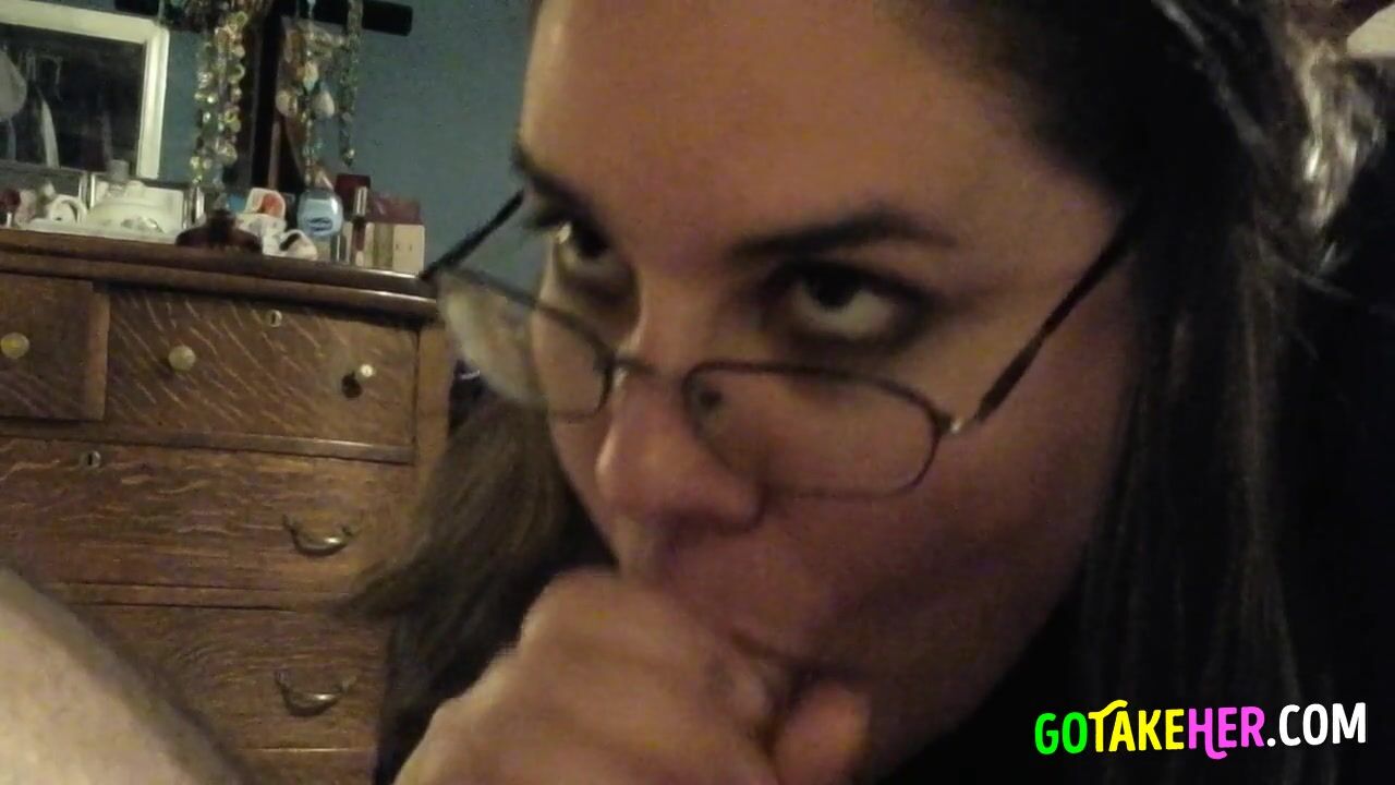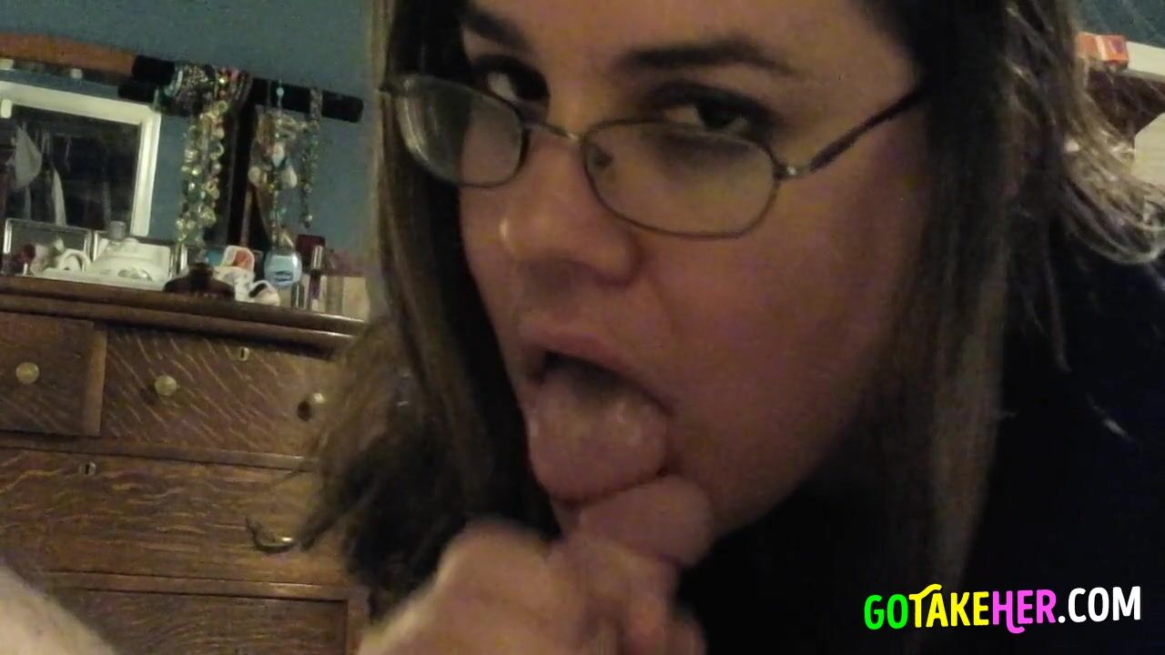 Becky, a sexy MILF with glasses, gives a POV blowjob to her man. This amateur BBW brunette sucks and strokes his cock, showing off her mature skills in this homemade hardcore clip.