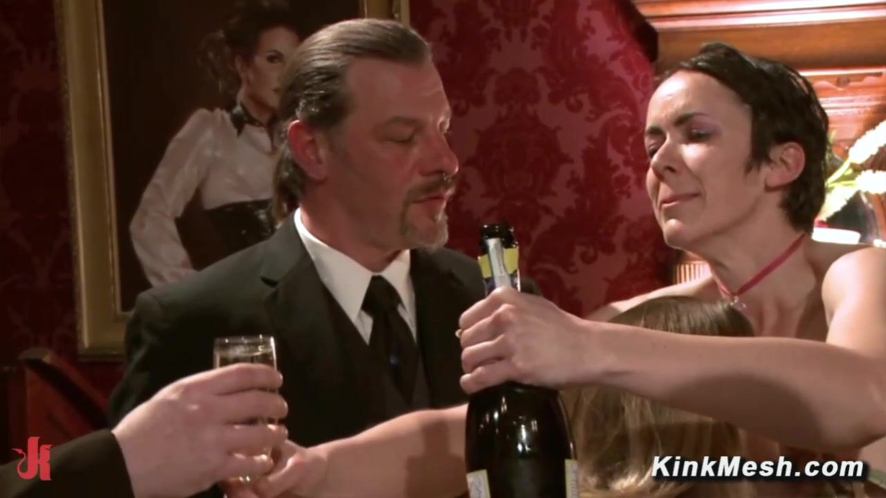Newbie slave Coral Aorta gets a hard lesson from senior slave Beretta James during a wild BDSM cock service party featuring Veruca and Mickey Mod with hot nipple play group sex and a brutal strap on climax with Penny Barber