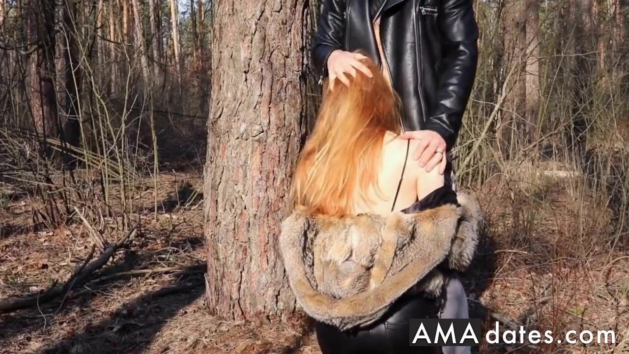 A daring redhead amateur babe gives a risky public blowjob to her man outdoors in the forest. She sucks his big cock passionately, not caring if anyone sees. This French couple loves the thrill of public nudity and sex.
