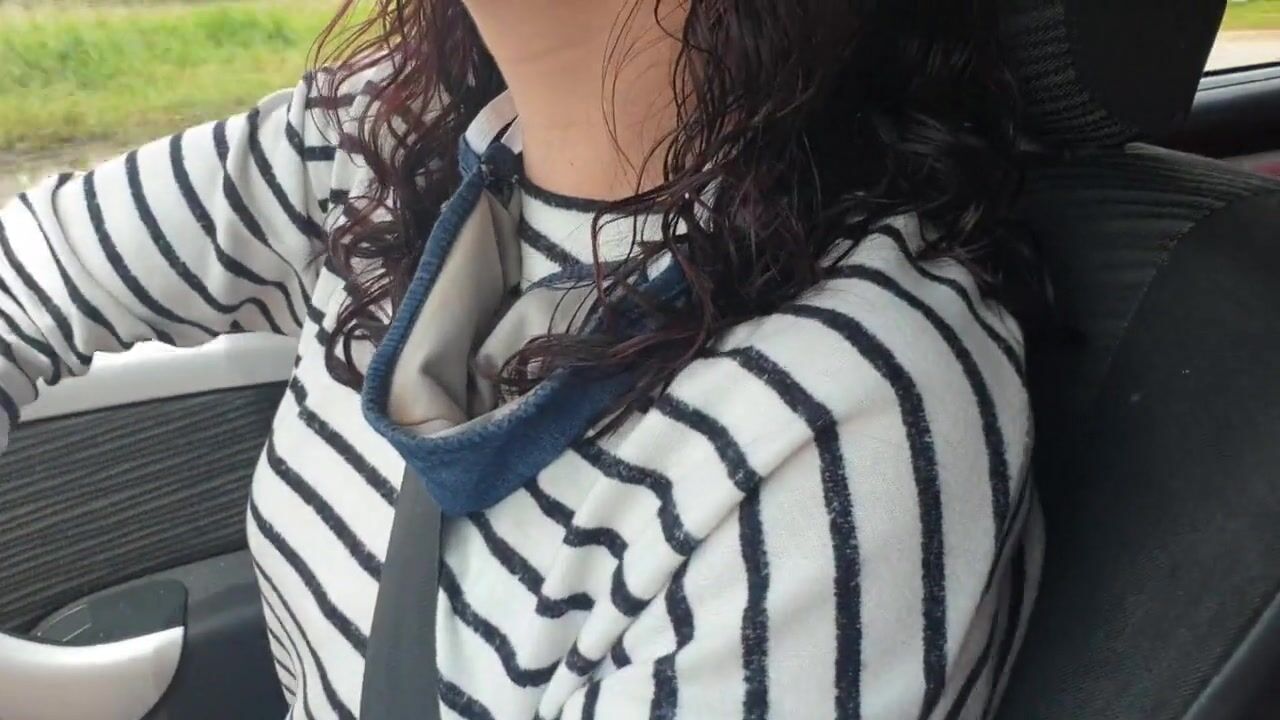 A naughty brunette MILF takes a drive in her car & can't resist playing with her petite pussy, fingering & rubbing herself, risking public exposure with a kinky solo masturbation session.