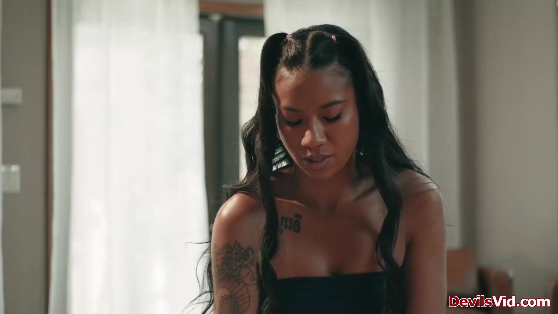 Ebony stepdaughter Ameena Green takes care of her stepdad whos recovering.The old man wants to jerk off so shes doing him handjob.He wants more so she sucks his big black cock.Shes so horny to stop,keeps riding him keeping that bbc inside her pussy.