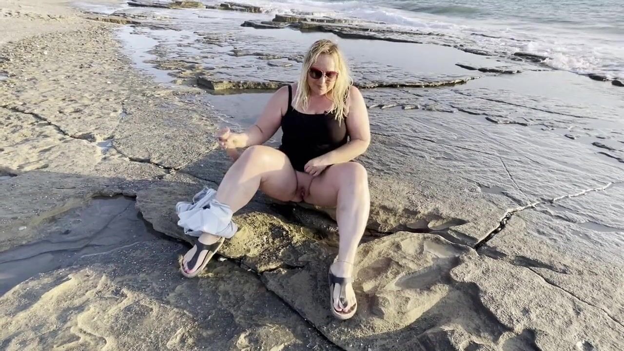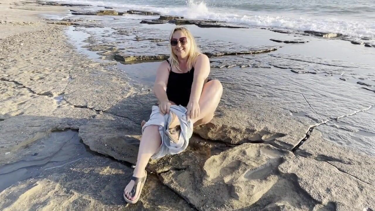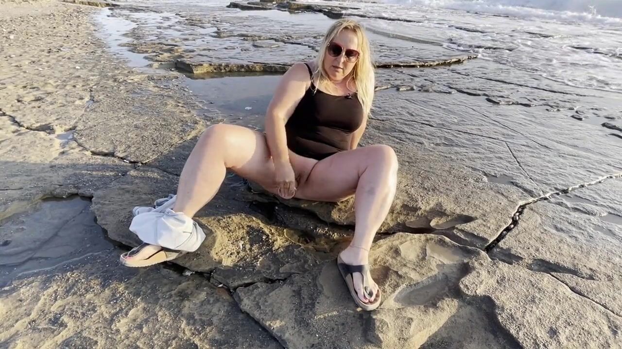 Blonde MILF Masturbates and Squirts on Public Beach