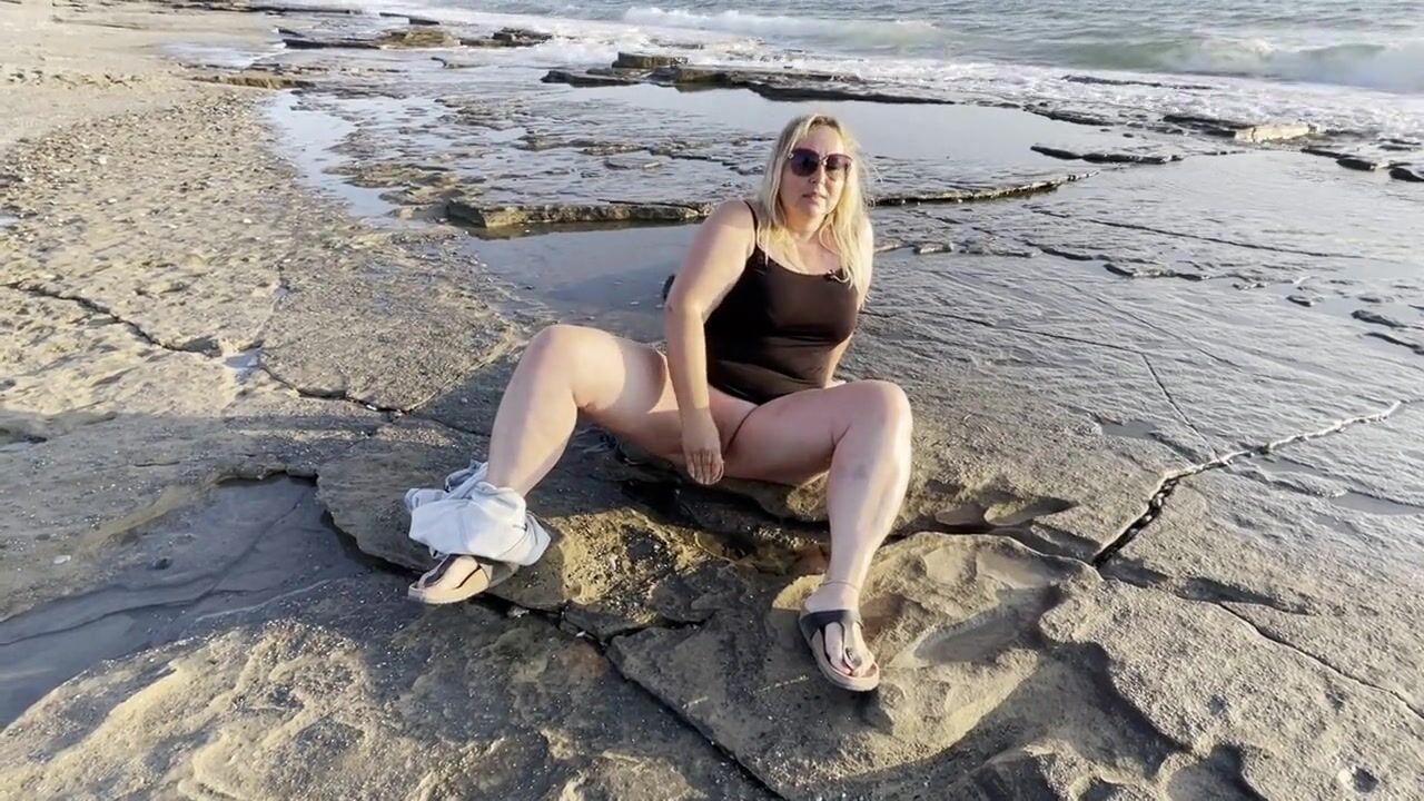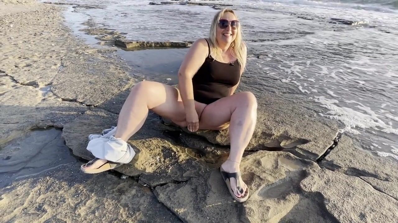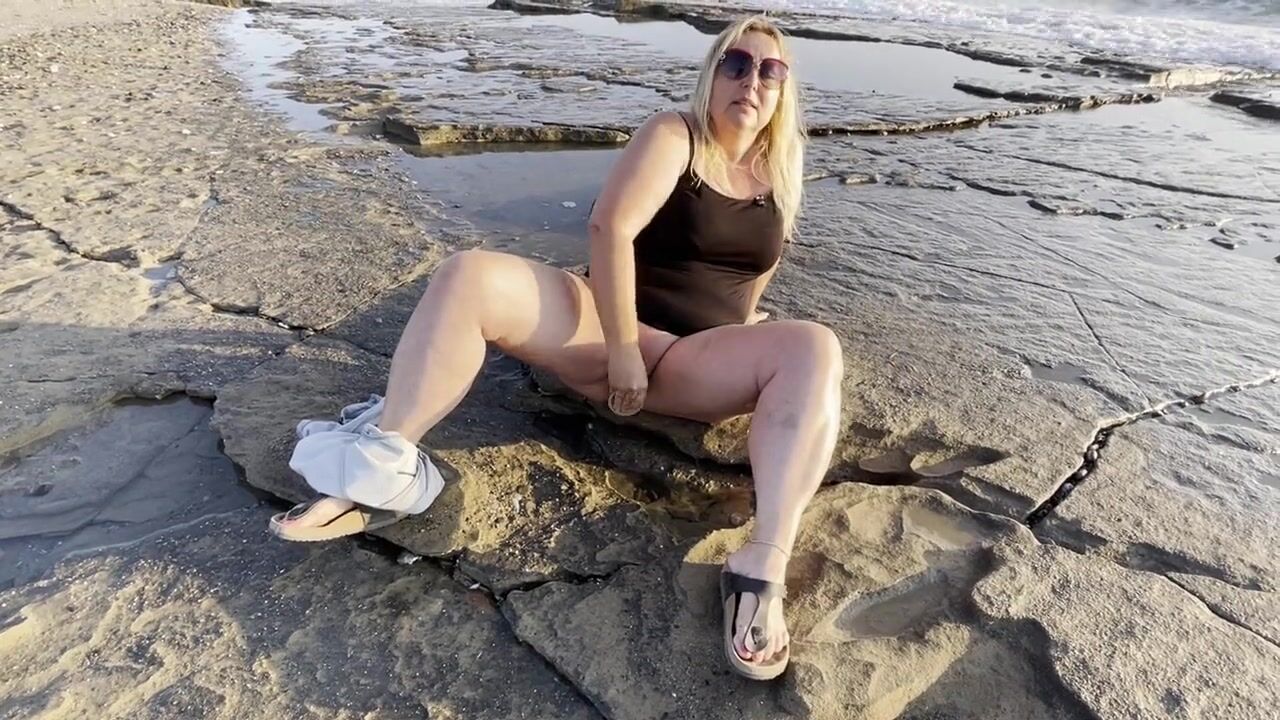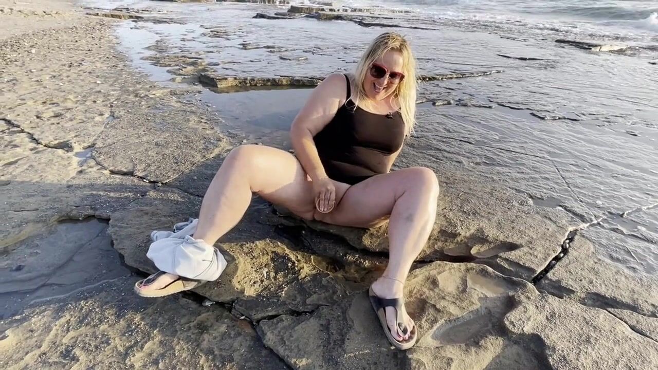 Blonde MILF Masturbates and Squirts on Public Beach