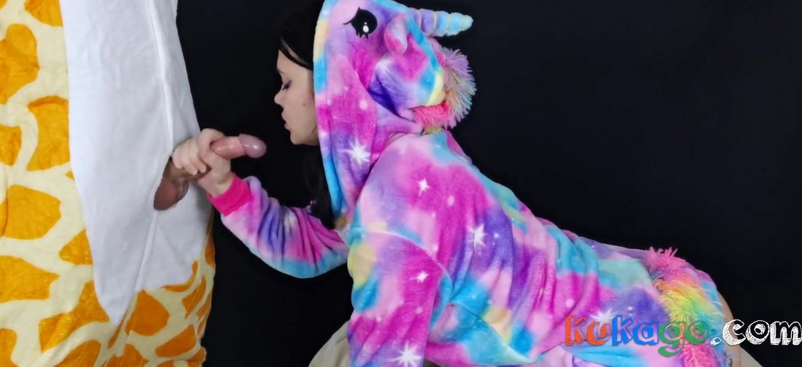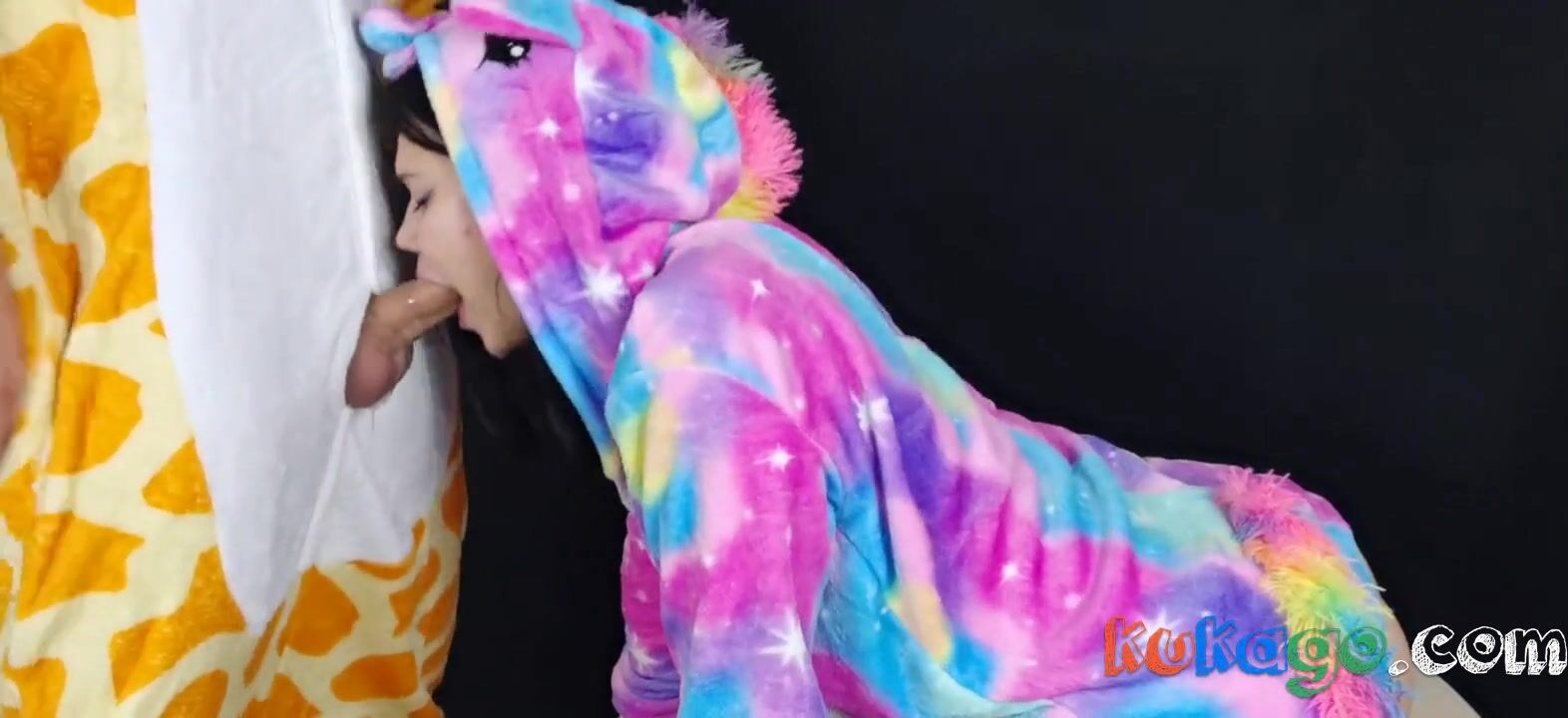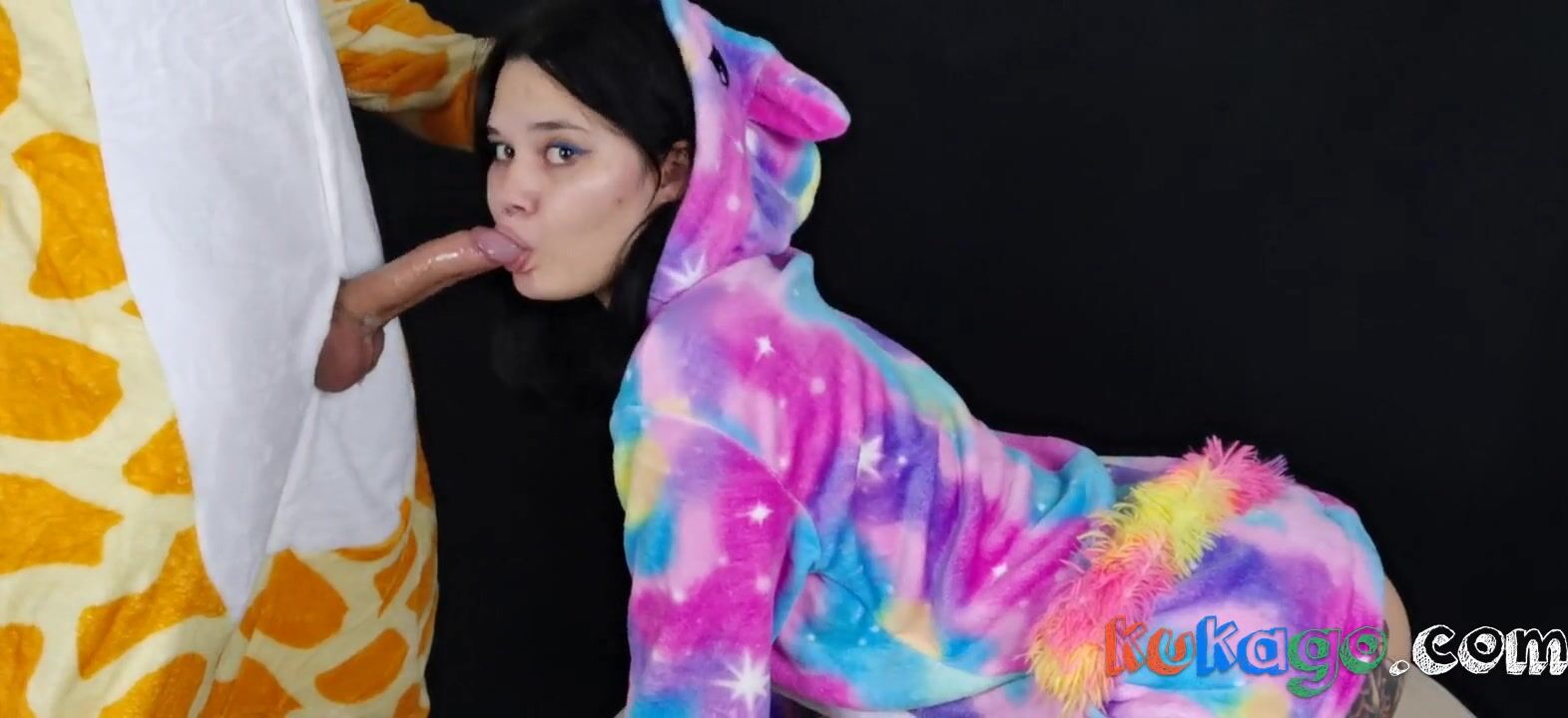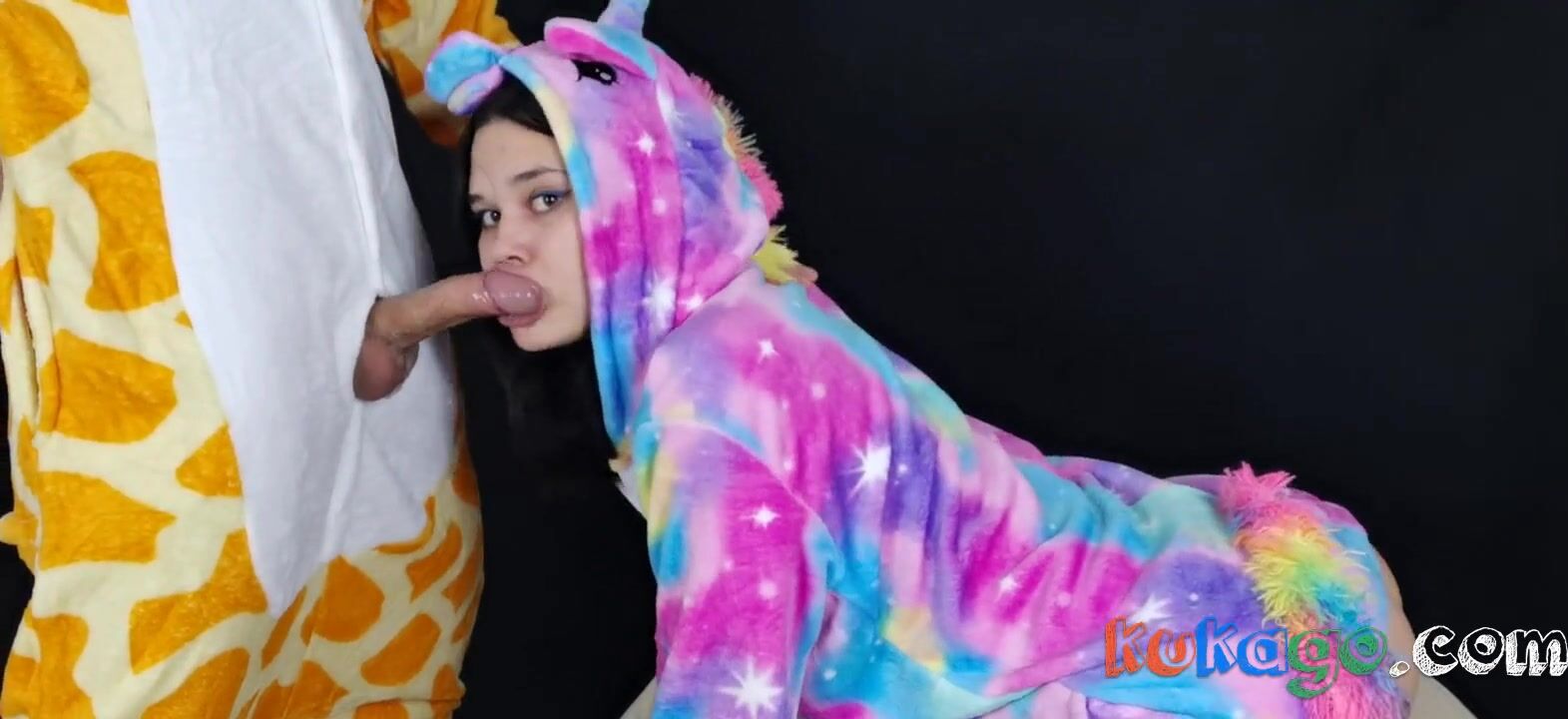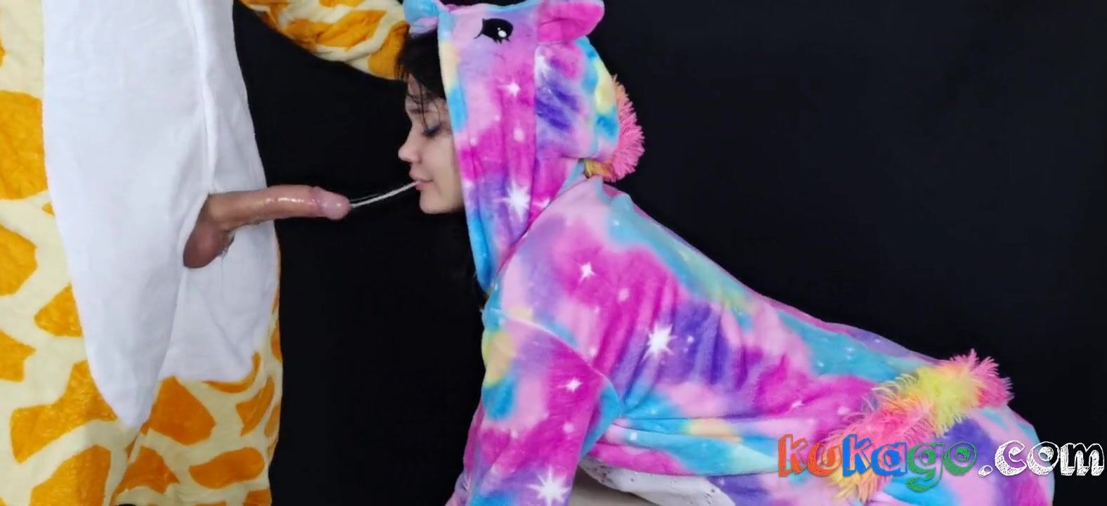 A gorgeous brunette babe with a slender body takes on a big cock, giving an intense and sloppy blowjob. She gags and chokes on the thick member, going deep and taking it all in, before getting her mouth filled with cum, which she happily swallows.