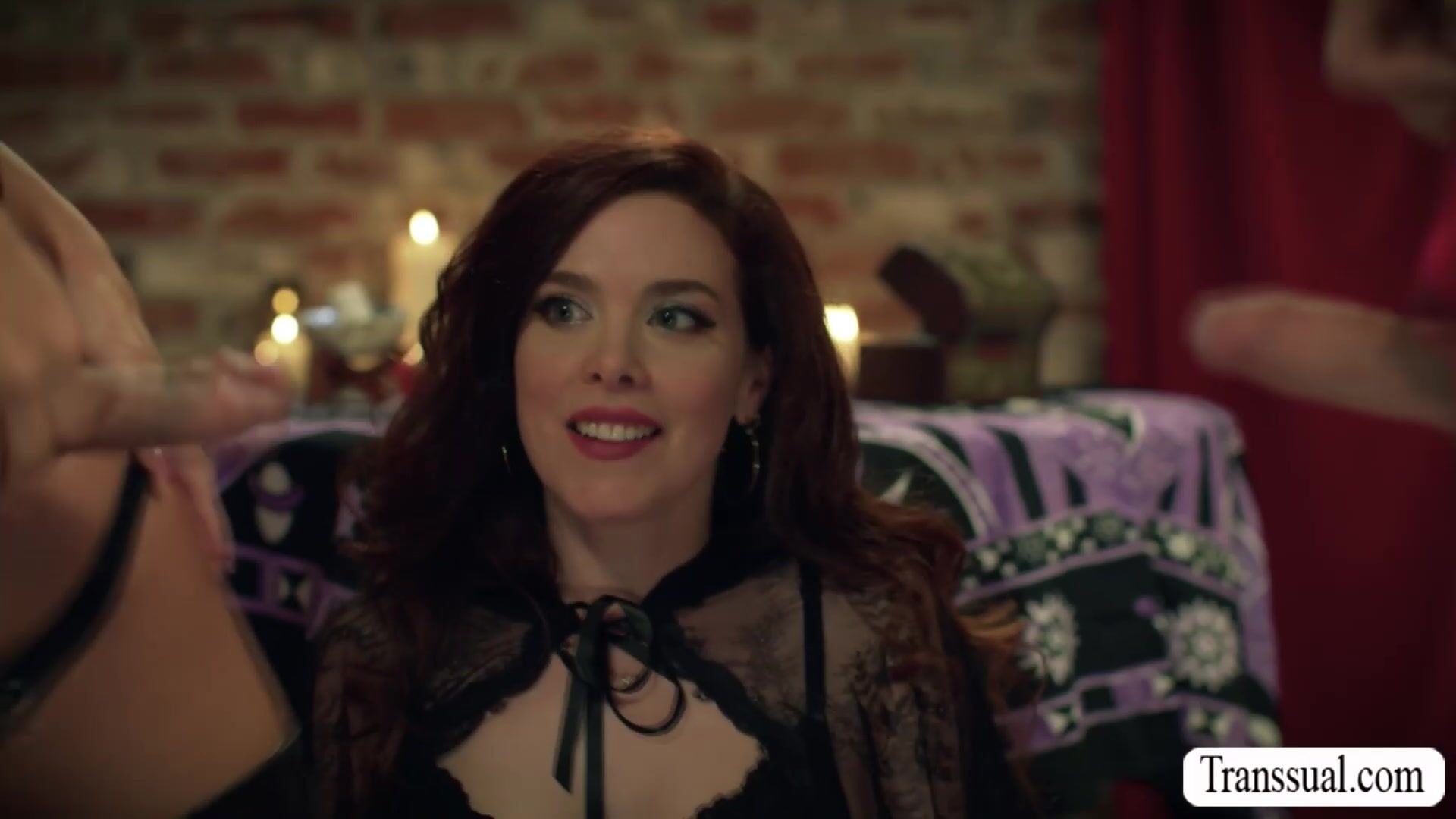 Busty babe Nicole Vaunt summons this two TS Avery Lust and Kasey Kei and let them eat her pussy.After that,she suck their hard shecocks passionately and let them fuck her wet pussy so hard.Go to Transsual.com for the full video of this and more.