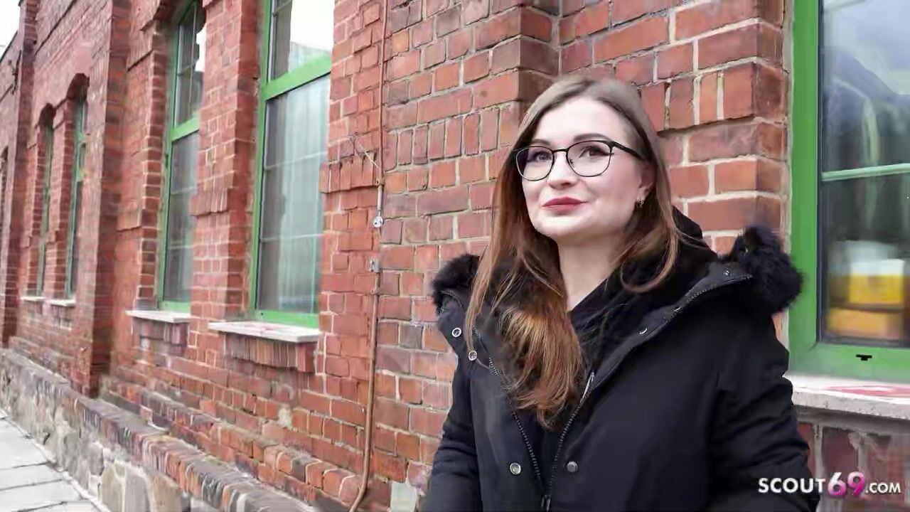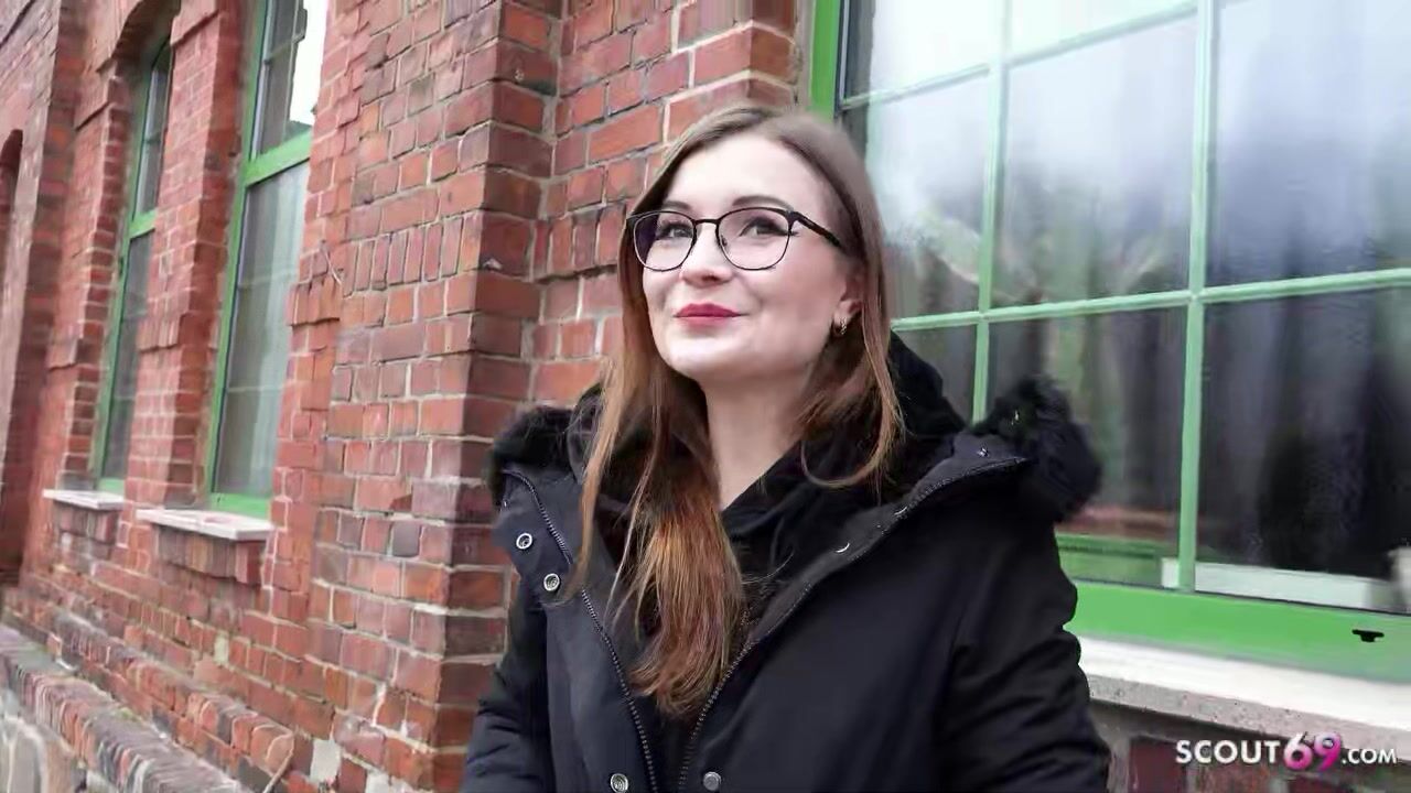 GERMAN SCOUT - German Small glasses student Tiny Emily Pick Up and talk to Casting Fuck
