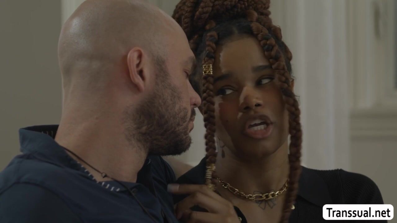 Watch me and my new TS Ebony neighbor kissing each other on the couch.After that,I let her throat my hard big cock passionately and in return,I fuck her wet ass so deep and hard.Go to Transsual.net for the full video of this and more.