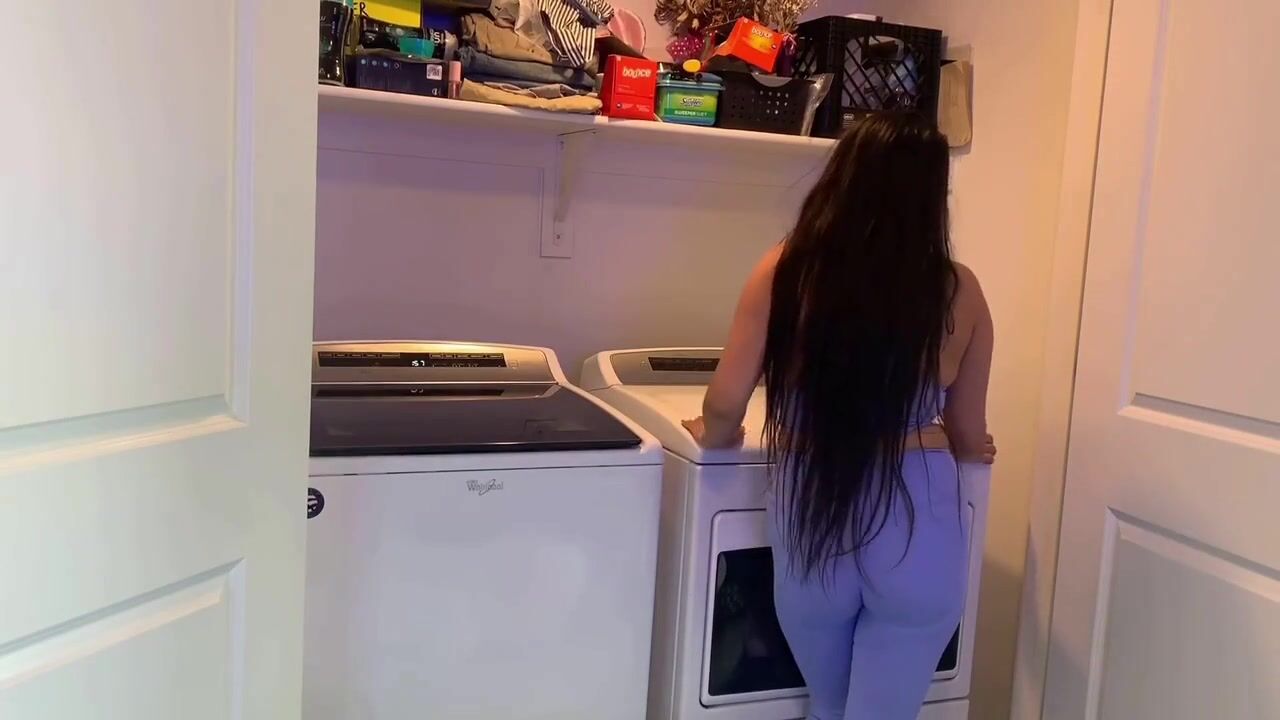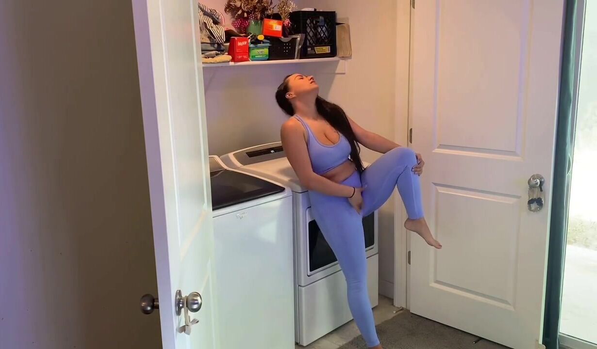 This sexy MILF can't keep her hands off her washing machine! She starts rubbing her big tits and ass, then uses her dildo and pillow for a wild ride. Her big tits bounce as she rides to orgasm.