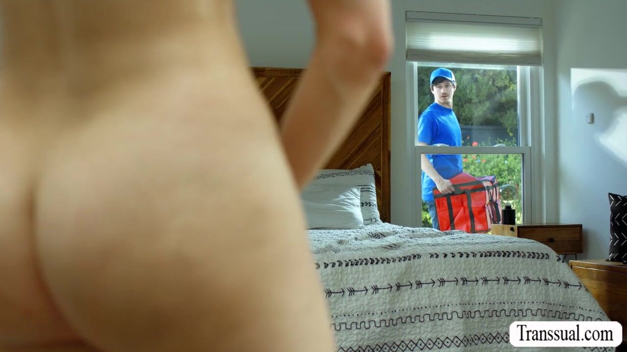 TS Stepmom fucks the big cock of delivery man
