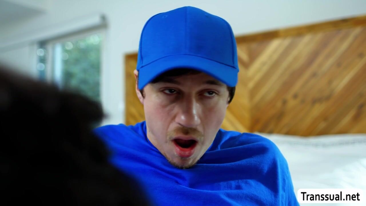 Trans Stepmom fucks the delivery mans enormous cock