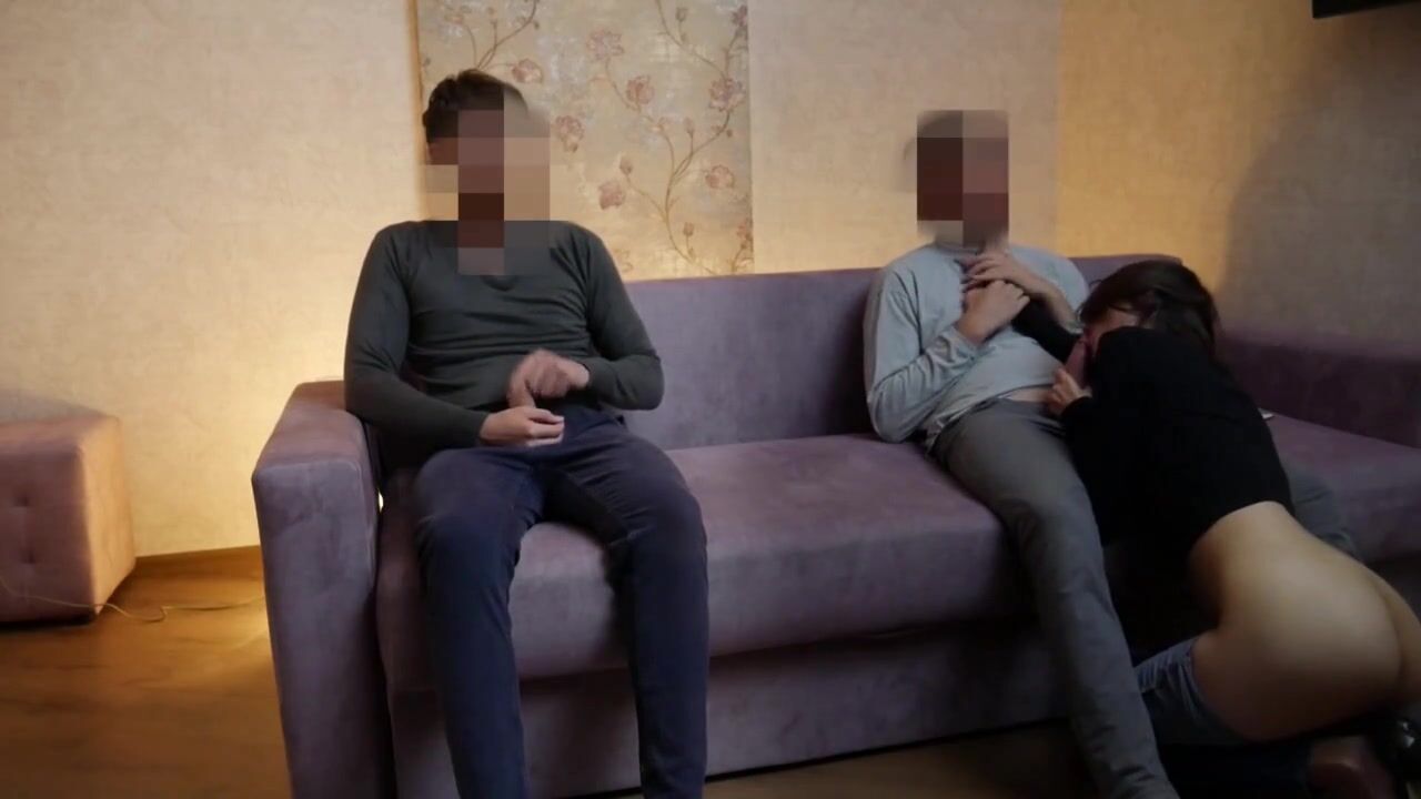 This hot amateur video features a Russian hotwife enjoying a threesome with her two cuckold boyfriends. She gives a blowjob and gets her ass licked, showing off her skills in this amateur cuckold scenario.